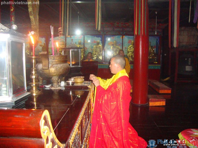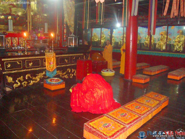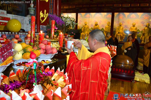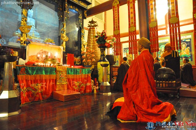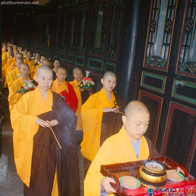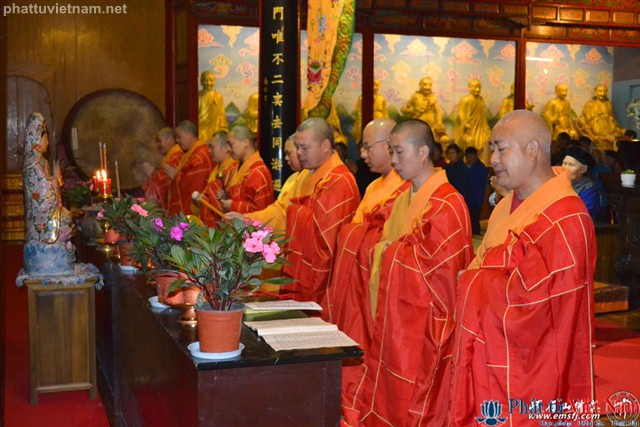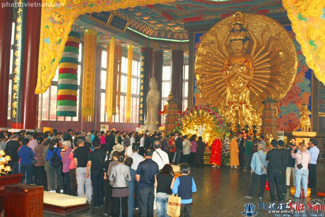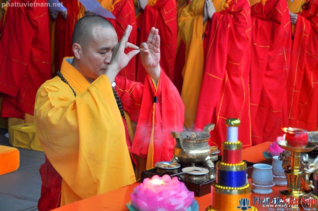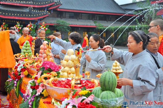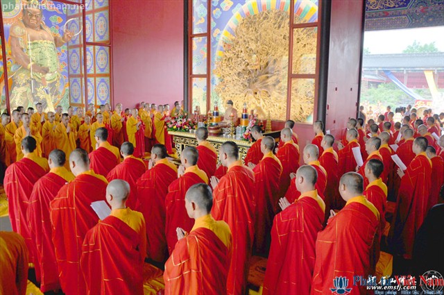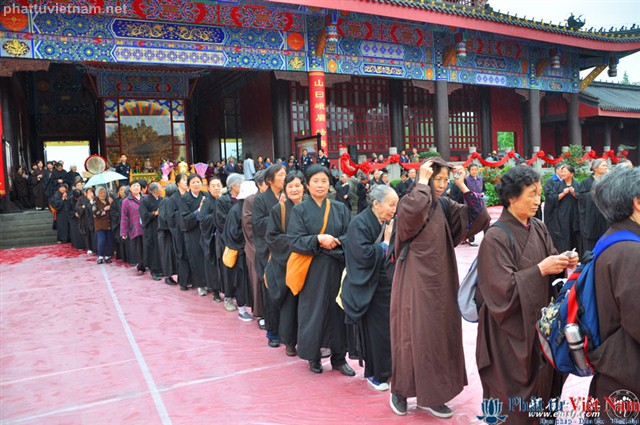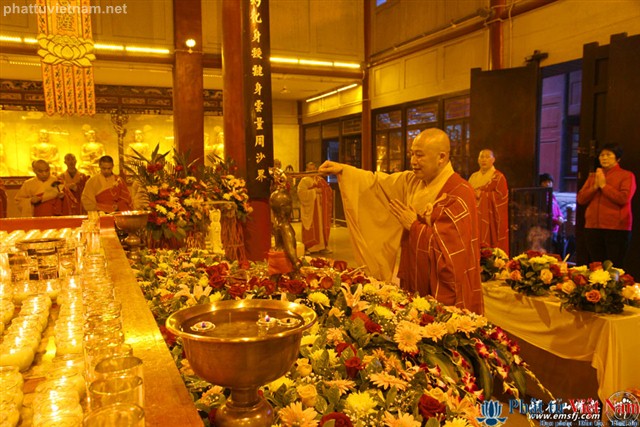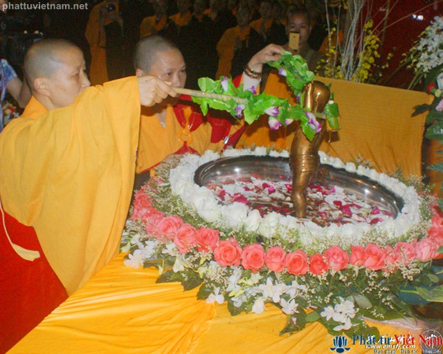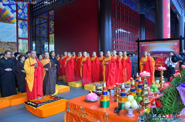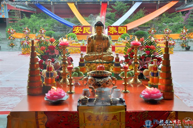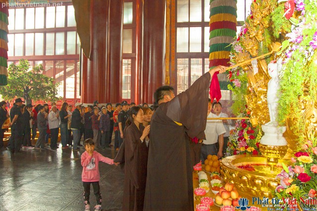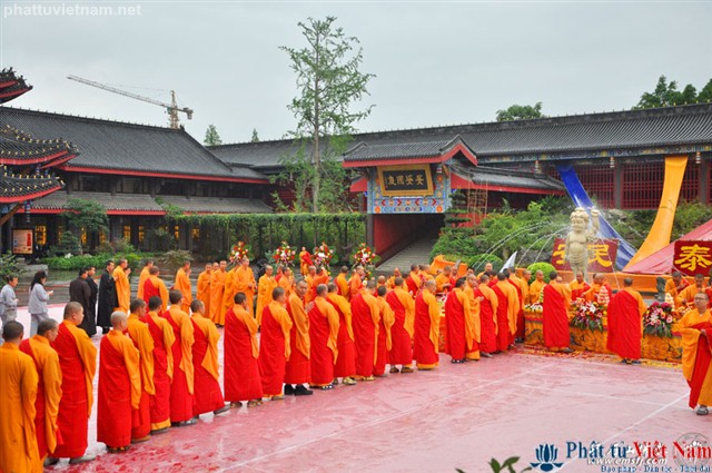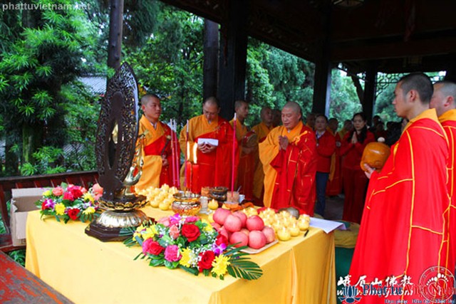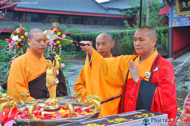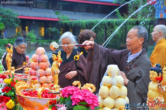 Đúng 8 giờ Pháp hội Tắm Phật được long trọng cử hành tại Thiền Viện Đại Phật do Pháp sư Vĩnh Thọ – Phương trượng Nga Mi Sơn chủ trì, có hàng trăm Pháp sư, thiện tín cư sĩ tham gia. Thông qua các hoạt động tụng kinh, tắm Phật… kỷ niệm ngày sinh nhật của Đức Phật, để báo ân Phật, ân cha mẹ và ân chúng sanh. Dùng cam lộ của Phật pháp phổ nhuận mảnh ruộng tâm của chúng sanh, dùng nước pháp thanh tịnh để rửa sạch nghiệp chướng của chúng sanh. Chư Tăng các tự viện núi Nga Mi dùng nhiều hình thức Pháp hội như: Bái sám, Phổ Phật, cúng chư Thiên, tụng kinh, thượng cúng, cúng đèn… để khánh chúc ngày lễ truyền thống của Phật giáo.