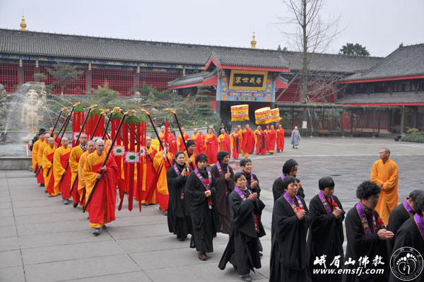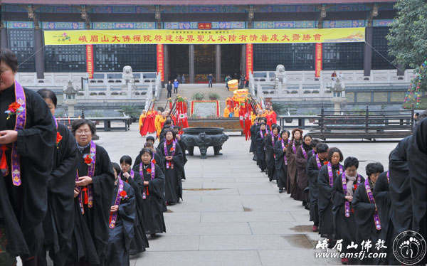 Đội ngũ sái tịnh do các vị Pháp sư tay cầm nghi trượng Liên đăng, Bảo cái… theo sau là các thiện tín cư sĩ, hình thành một đội ngũ uy nghi đi nhiễu xung quanh các Pháp đàn. Nghi thức sái tịnh kéo dài khoảng hai giờ, trang nghiêm như pháp. Không những Đàn tràng thanh tịnh, mà thân tâm của mỗi người như được tẩy rửa sạch hết não phiền.