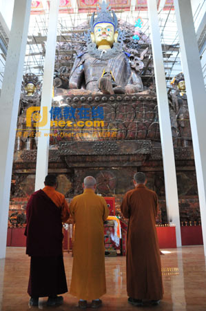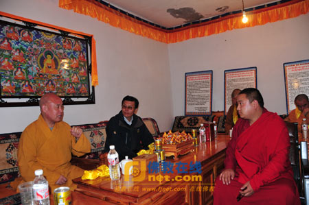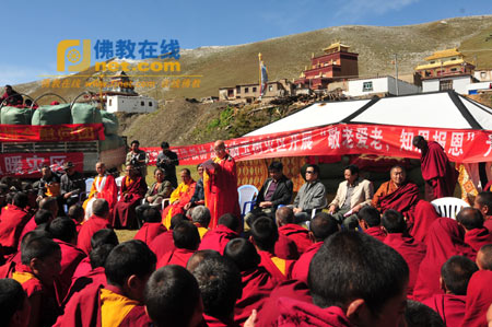 Pháp sư Diễn Giác đại diện Trưởng lão Truyền Ấn Hội trưởng HHPG TQ, Pháp sư Học Thành Phó Hội trưởng và Tổng Thư ký Vương Kiện, phát biểu những lời an ủi thân thiết gửi đến đồng bào thuộc dân tộc Hán và Tạng, những người đã bị chấn thương nghiêm trọng của trận động đất kinh hoàng cách đây ba năm; bày tỏ lời chia buồn thâm thiết đối với những người quá vãng; đặc biệt là lời cảm tạ chân thành nhất, kính trọng nhất, đến tất cả chư tăng Phật giáo Tạng Truyền đã mặc nhiên phụng hiến, không sợ khó khăn, dũng cảm xã thân cứu người trong trận động đất vừa qua.