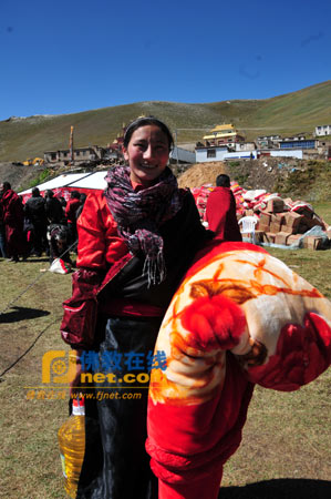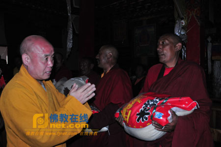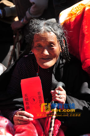 Nghi thức quyên tặng trên thảo nguyên tuy đơn giản nhưng cảm động lòng người. Gần 100 vị Lạt ma trẻ tuổi đến chuyển vận vật phẩm, hơn 99 người tuổi cao đến từ viện Kính Lão, làng Trân Tần, huyện Xứng Đa, được sự giúp đỡ của mọi người, từng bước chân xiêu vẹo đến tụ điểm phát quà, có khoảng vài trăm người già tại địa phương cũng đến chờ đợi từ sáng sớm. Thảo Nguyên Gia Đường ngày thường vốn tĩnh lặng, hôm nay lại trở thành một nơi vô cùng nhiệt náo mà vui vẻ.