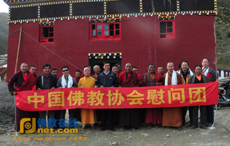 Vừa qua, đoàn Ủy lạo gồm các Trưởng, Phó đoàn thuộc Hiệp hội Phật giáo Trung Quốc như: Trưởng đoàn: Pháp sư Diễn Giác – Phương trượng chùa Quảng Tế, Phó Thư ký HHPG TQ; Phó đoàn: ông Lương Tuấn Cường – Phó Chủ nhiệm văn phòng HHPG TQ; Tổng thư ký: ông Tang Kiết Trác Tây – Bộ chủ nhiệm biên tập “Pháp Âm”; Phó Thư ký: PS Tánh Diệu – Phó Chủ nhiệm Hội Ủy viên chuyên nghiệp HHPG TQ và PS Thường Huy – Phó Hội trưởng Hội Cơ kim từ thiện Phật giáo tỉnh Hà Bắc đã viếng thăm chư tăng các tự viện thuộc khu vực đại địa chấn tại huyện Ngọc Thụ, tỉnh Thanh Hải.