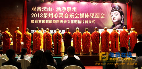 Chư sơn Trưởng lão đăng bảo tòa chủ trì Pháp sự, theo nghi thức Phật giáo niêm hương sái tịnh gia trì lần đầu tiên phát hành bưu thiếp Văn hóa Quan Âm, tem Phật giáo, kỷ niệm chương… Cùng phúng tụng “Đại Bi Chú”, “Tâm Kinh”, “Quan Âm Tán”, niệm Thánh hiệu Quan Âm, đồng cầu phúc cho nhân dân Tuyền Châu và lễ hội thành công viên mãn.