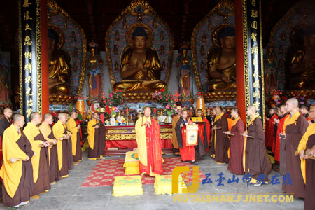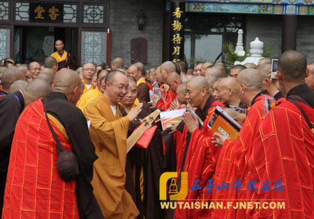 Sau cùng, chúng giới tử hướng về Hòa thượng Đắc giới, Pháp sư Giám viện Duy Chứng, Pháp sư Tri khách Nghĩa Sùng hành lễ cáo giả xuất sơn (cáo biệt). Đến đây, Pháp hội Tam Đàn Đại Giới truyền giới Ngũ Đài Sơn đã kết thúc viên mãn.
