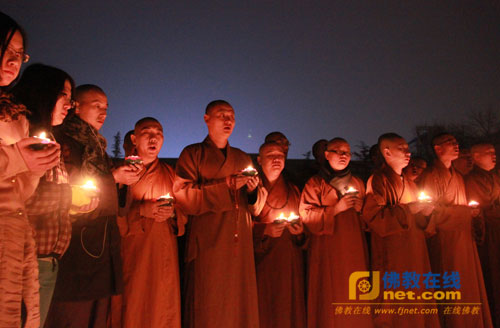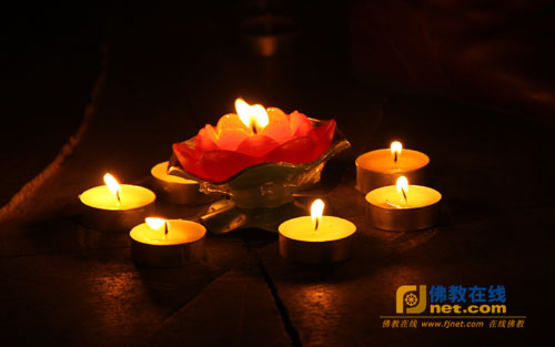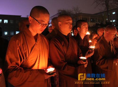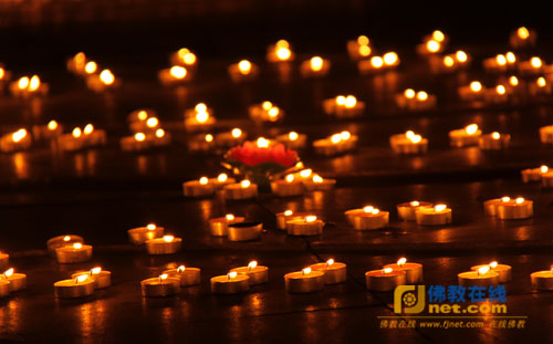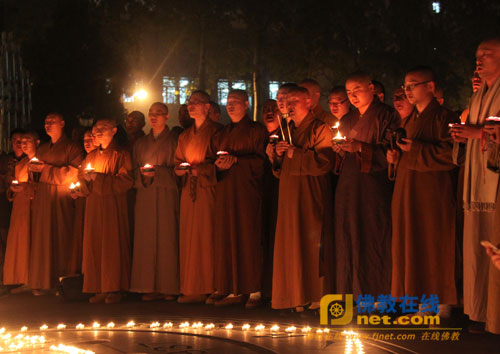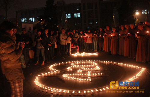 Trước khi bắt đầu hoạt động nghi lễ, các Pháp sư và sinh viên dùng hàng trăm ngọn nến tạo hình quả tim cực to, đem hình chữ số “20.4” cũng bằng những ngọn nến đặt vào trong quả tim nến, và hai chữ “Nhã An” (雅安) được xếp cạnh hai bên chữ “Tâm” (心), cùng ai điếu các đồng bào gặp nạn trong trận động đất.