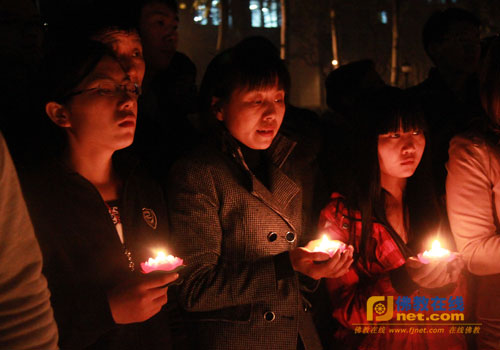 Cuối cùng, dưới sự hướng dẫn của vị chủ trì, cùng những người tham dự buổi lễ hét thật to: “Nhã An, chúng ta cùng đứng lên”, tâm gắn liền với Nhã An, cầu nguyện Nhã An, và cùng nhau mặc niệm ba phút cho những nạn nhân động đất. Đến đây, hoạt động thắp nến cầu nguyện đã kết thúc viên mãn.