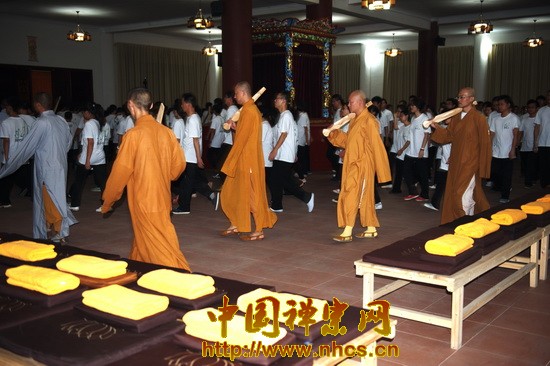 Hòa thượng nói thêm, mỗi năm, Thiền tự Nam Hoa bắt đầu đả “Thiền Thất” vào mồng một tháng mười, ngày cuối cùng đả thiền thất, sư Duy na cầm hương bản đánh vào vai thiền sinh hỏi “niệm Phật là ai” ? Tốt nhất là mọi người không nên lay động, cũng không nên mở miệng, vì chúng ta vẫn chưa khai ngộ”. Hòa thượng còn đề cập đến công án của Thiền sư Mã Tổ để khai thị các trại sinh, học Phật chỉ cần sẵn sàng hạ thủ công phu, vào cổng Thiền Tông, chắc chắn tên mình được đăng trên bảng vàng. Tham thiền học Phật cũng khó mà cũng dễ, điều quan trọng nhất là trong tâm luôn đề khởi “sanh tử là việc lớn”, một cách bức thiết, mà dụng công học đạo.