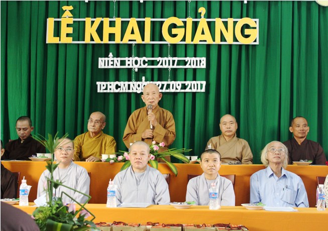 Lễ khai giảng có sự chứng minh, tham dự của HT.Thích Minh Cảnh, Giám đốc Trung Tâm dịch thuật Hán Nôm Huệ Quang, cùng chư tôn đức BTS GHPGVN Q.Tân Phú, giáo thọ sư và trên 50 học viên tham dự buổi lễ.