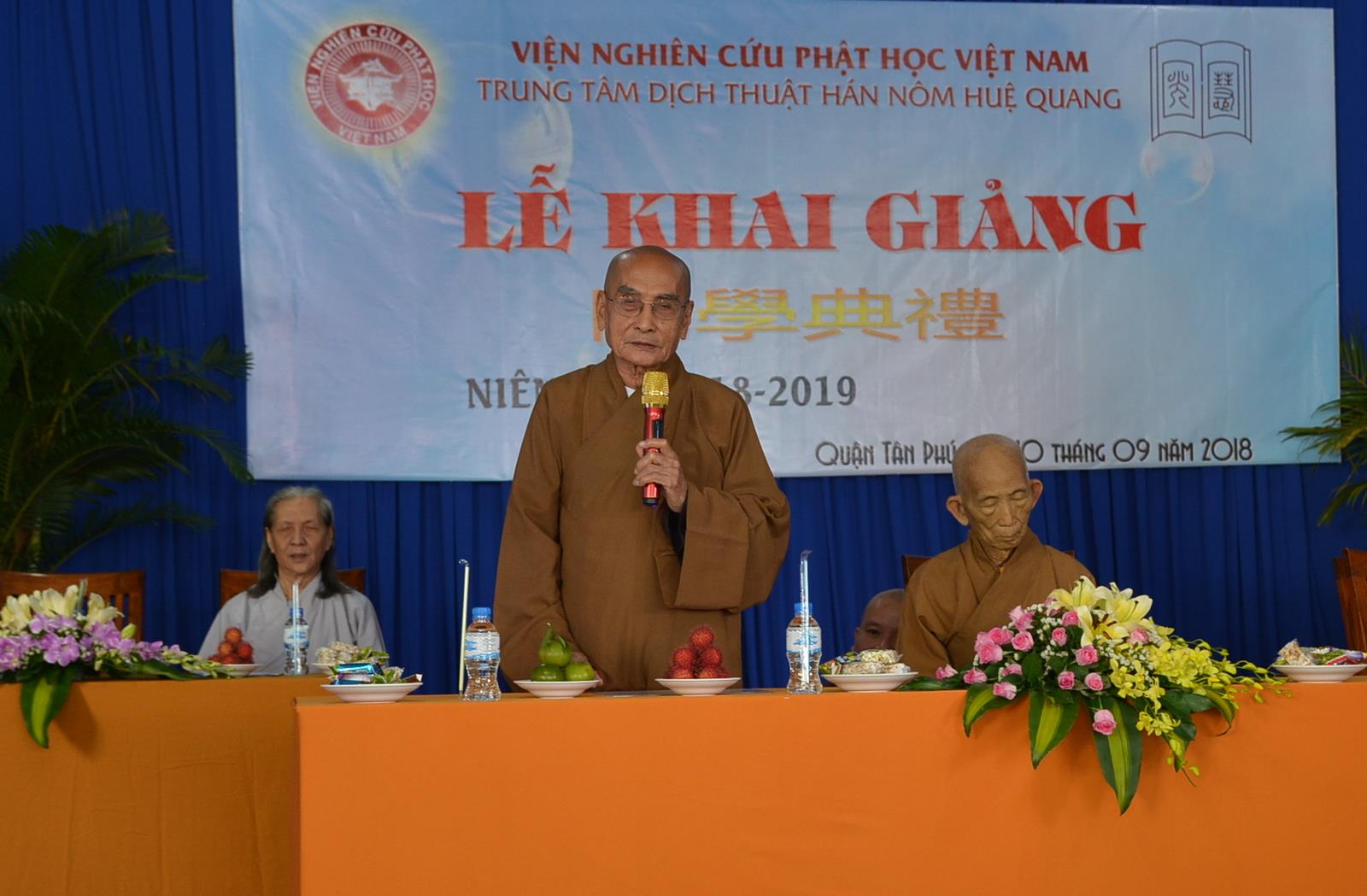 Kết thúc buổi khai giảng TT.Thích Thiện Hòa – Phó Trưởng Ban Thường trực BTS GHPGVN Q.Tân Phú đã ghi nhận và niệm ân những đóng góp to lớn của HT.Thích Minh Cảnh trong sự nghiệp giáo dục và đào tạo Tăng Ni của ngành dịch thuật Hán Nôm. Thượng tọa hy vọng thế hệ Tăng Ni trẻ đang theo học tại đây sẽ có nhiều điều kiện tốt hơn để phát huy sở học của mình và kế thừa sự nghiệp của chư vị tiền bối hữu công nói chung và tâm nguyện của Hòa thượng Giám Đốc TT DTHN HQ nói riêng.