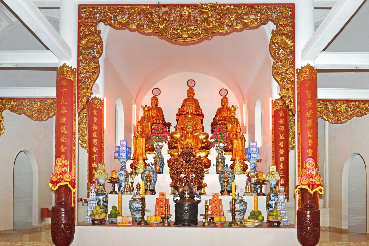 Đại hùng bảo điện là một tòa phạm vũ uy nghiêm và khang trang rộng 4.840m2. Điện Phật được bài trí trang nghiêm, tôn trí bộ tượng Tam Thế Phật, bộ tượng Di Đà Tam Tôn, bộ tượng Thích Ca Tam Tôn, tòa Cửu Long…