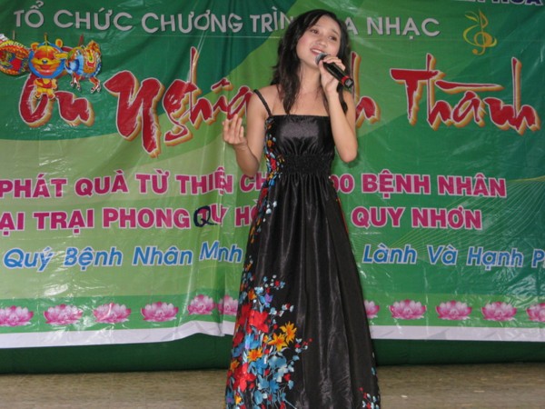 Ca sỹ kiêm diễn viên điện ảnh trẻ Mỹ Kim xúc động “Thương lắm các cô chú bệnh nhân và các em thiếu nhi nơi đây. Mong rằng sẽ có nhiều đoàn từ thiện, nhiều anh chị nghệ sỹ, ca sỹ đến phục vụ bà con, giúp họ xua tan những mặc cảm bệnh tật hòa nhập cộng đồng”.