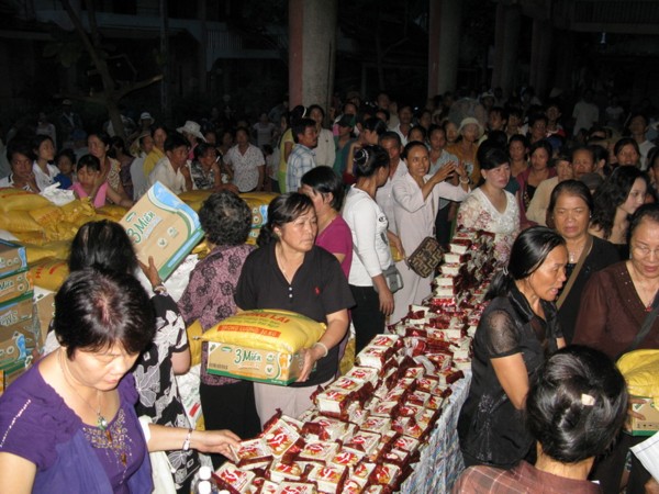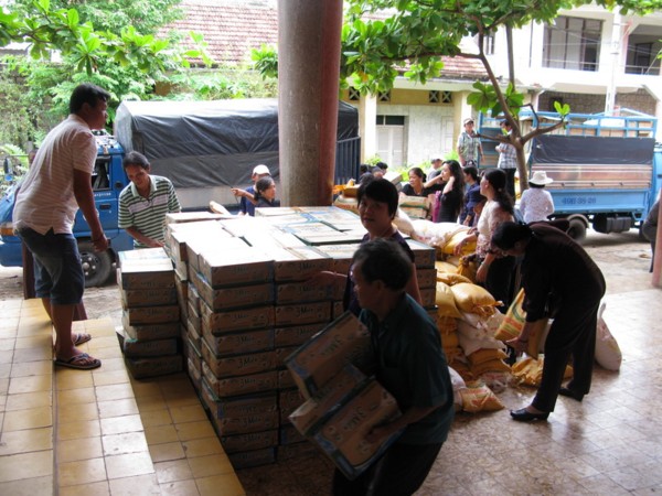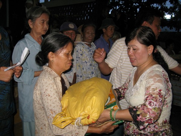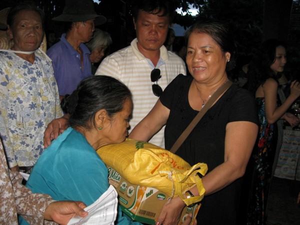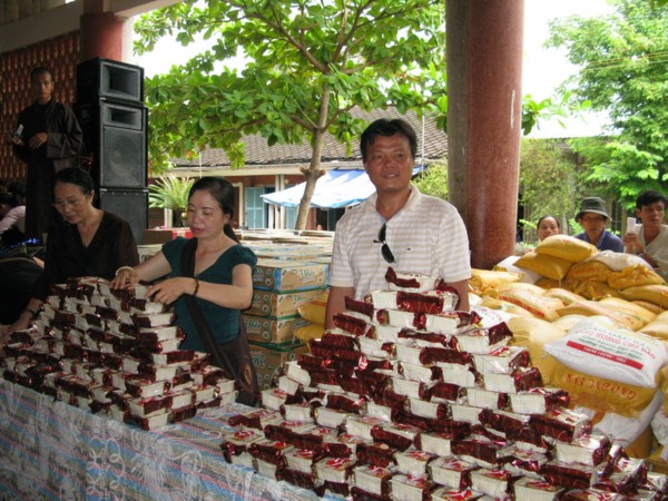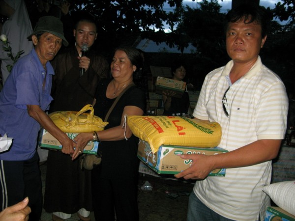 500 phần quà mỗi phần gồm 10 kg gạo, 1 thùng mì cũng đã được Ban Từ Thiện chùa Viên Giác TP Biên Hòa trao tặng cho bà con bệnh nhân nơi đây. Tâm sự với chúng tôi, chủ tiệm vàng Kim Minh thay mặt anh em bạn hữu tại thành phố Vũng Tàu và các thành viên trong đoàn cho biết “Cảm động quá thầy ạ! Có đi như thế này để tự nhìn lại mình và để thấy cuộc đời này còn có quá nhiều cái đẹp trong hơi ấm tình người”.