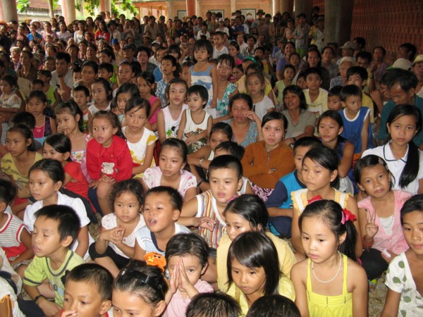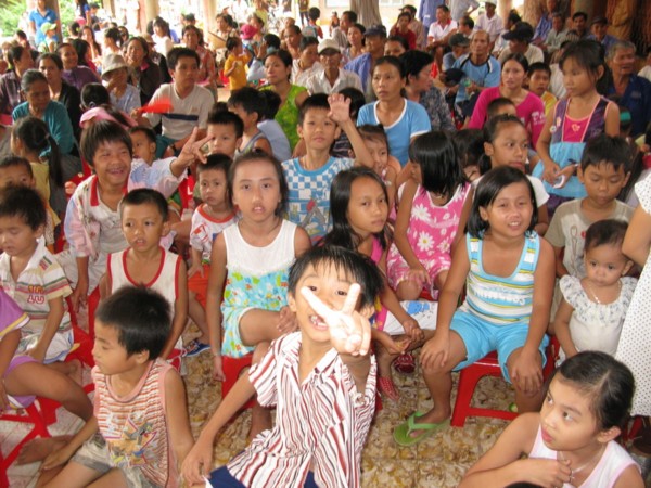Nghe tin có đoàn từ thiện Phật giáo đến thăm, tặng quà và giao lưu văn nghệ, bà con bệnh nhân vui lắm, đến xem rất đông, nhất là các em thiếu nhi cứ tíu tít nói cười rôm rả chạy nhảy, đứng ngồi chật kín cả khán phòng.