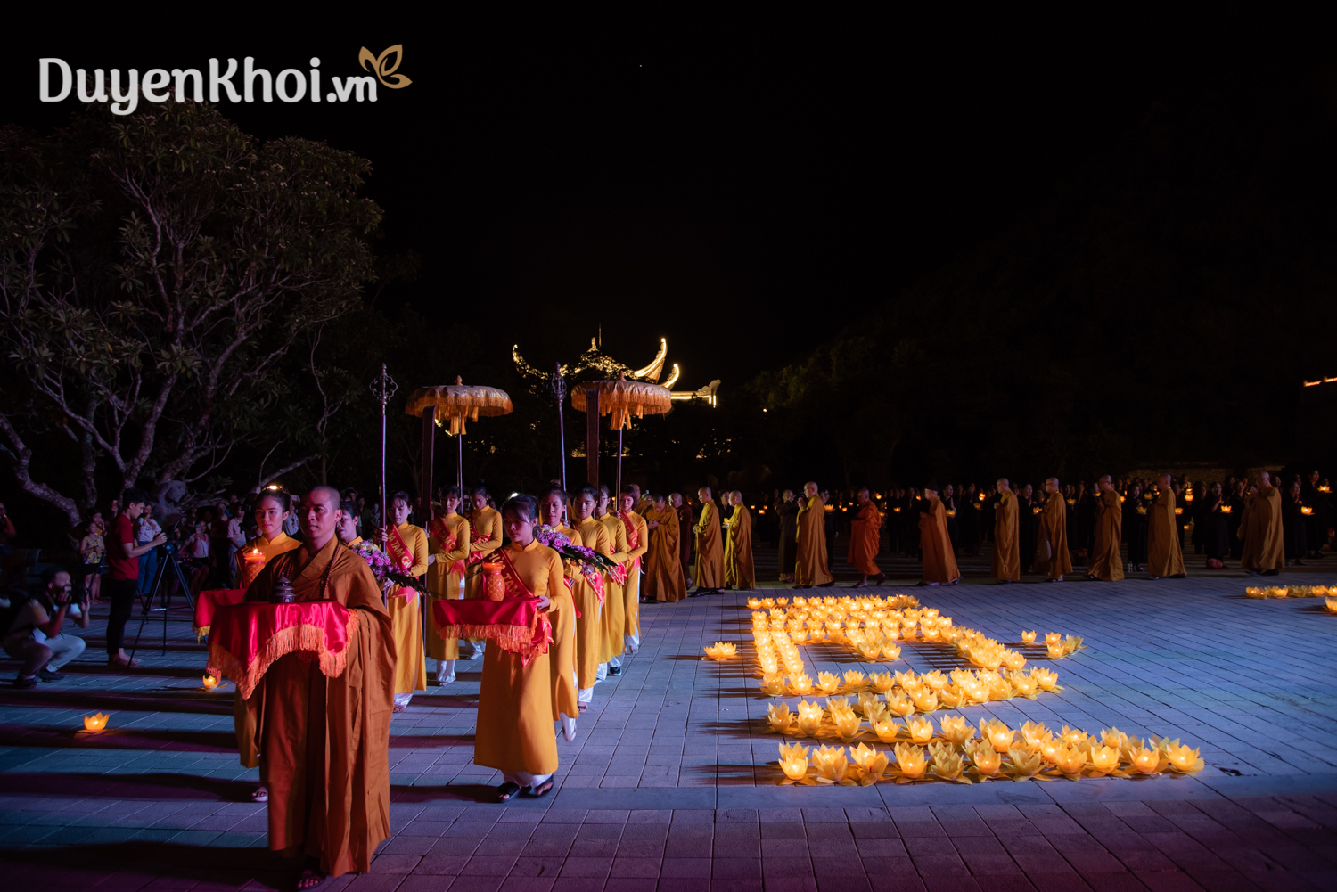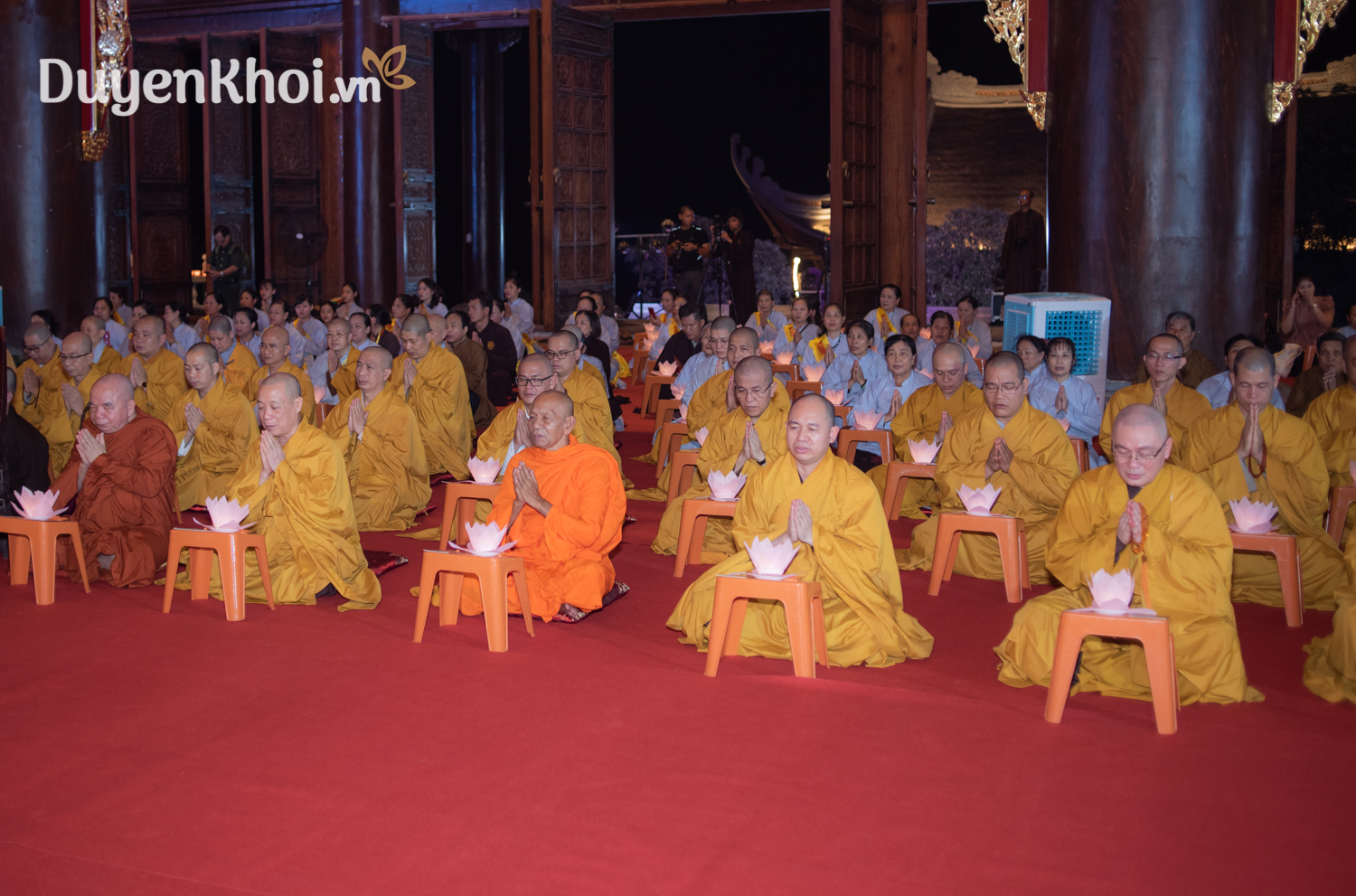 Tại Pháp hội, chư Tôn đức cùng đồng tụng kinh “Chuyển Pháp Luân”, niệm hương bạch Phật, đảnh lễ Tam-bảo, thắp nến dâng lên tri ân anh linh anh hùng liệt sĩ. Tiếp đó, đại chúng cùng nhiễu quanh bản đồ Việt Nam được bố trí bằng nến tại sân Điện Tam Thế với mong ước biên cương và biển đảo được trọn vẹn.