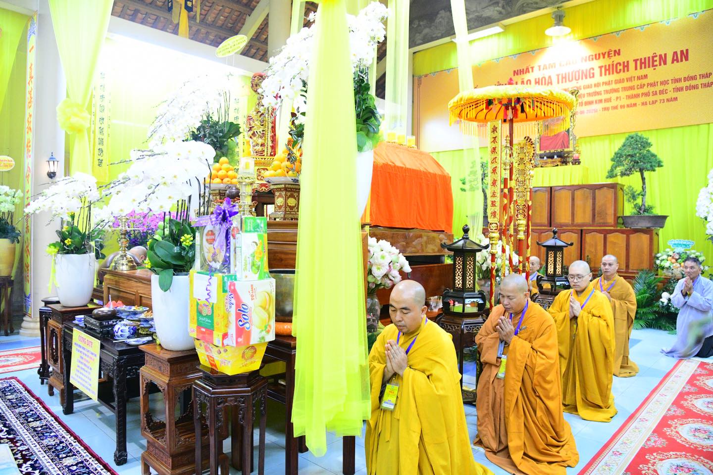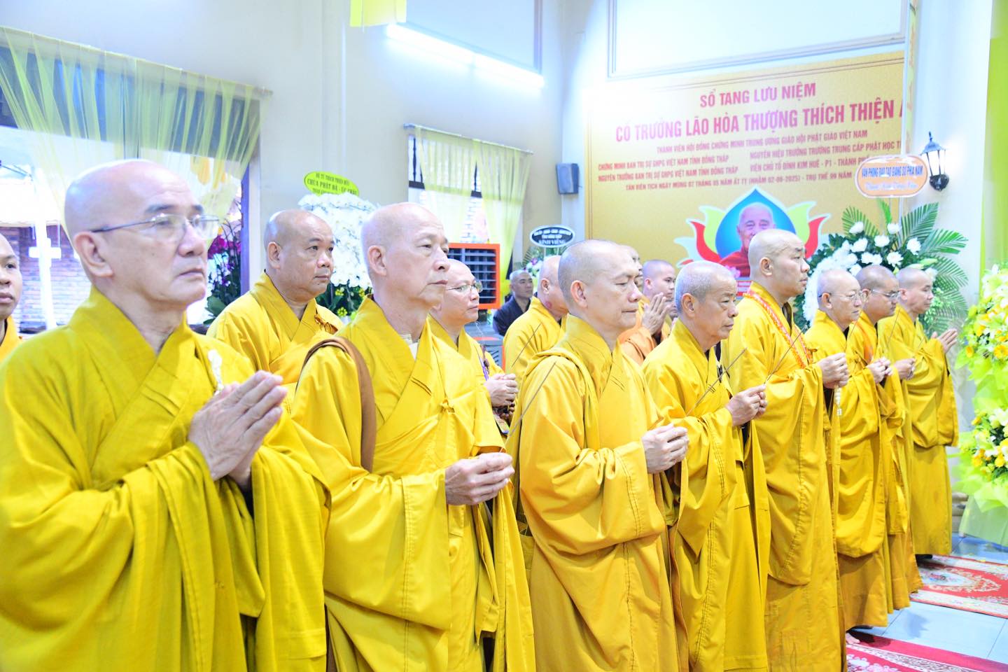 Đối trước án tiền, chư tôn đức đã niêm hương tưởng niệm Trưởng lão Hòa thượng Thích Thiện An – Thành viên HĐCM, Chứng minh Ban Trị sự GHPGVN tỉnh Đồng Tháp, nguyên Trưởng ban Trị sự GHPGVN tỉnh Đồng Tháp, nguyên Hiệu trưởng Trường Trung cấp Phật học tỉnh Đồng Tháp, Viện chủ Tổ đình Kim Huê.
