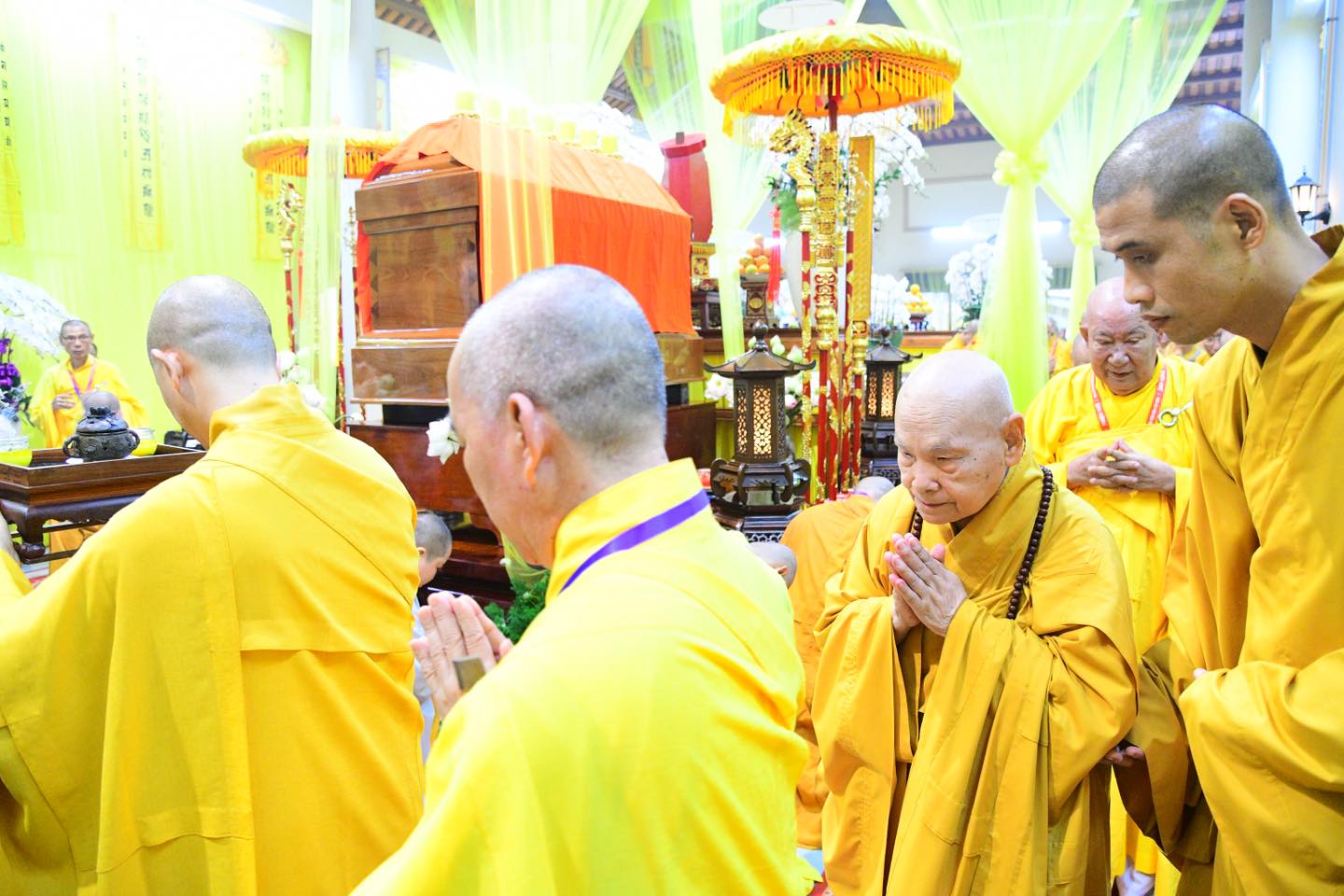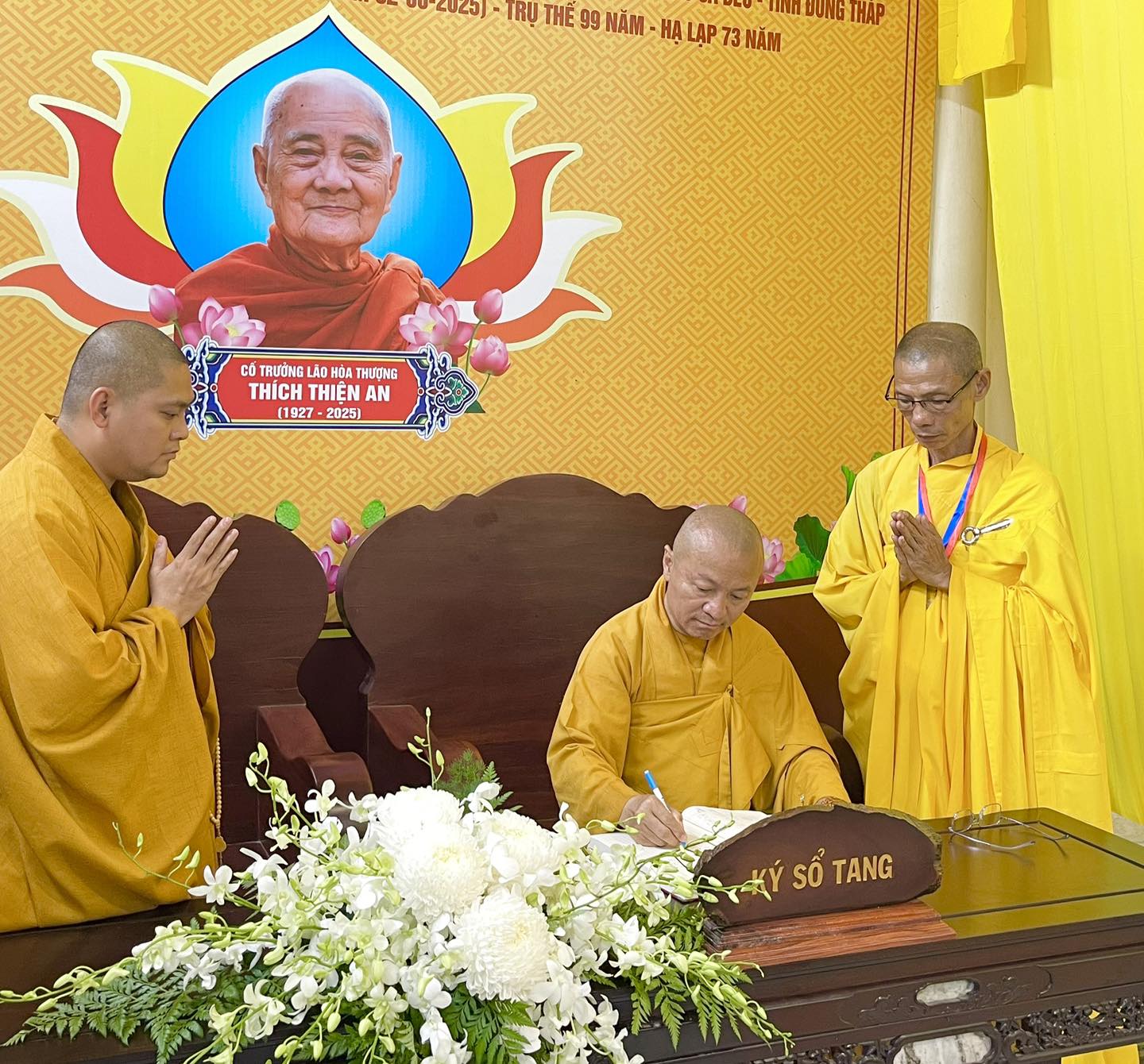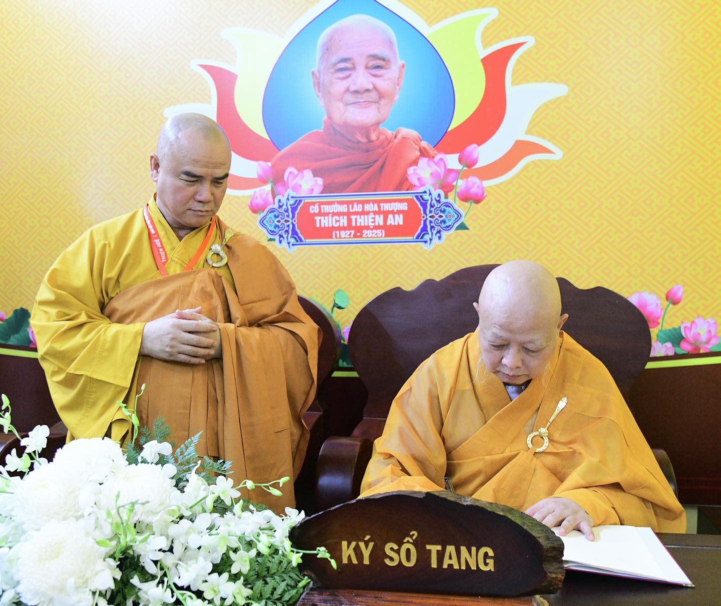 Tham gia lễ viếng có Trưởng lão Hòa thượng Thích Thiện Nhơn – Phó Pháp chủ HĐCM, Chủ tịch HĐTS; Trưởng lão HT. Thích Thiện Pháp; Trưởng lão HT. Thích Huệ Minh; Trưởng lão HT. Thích Giác Quang – đồng Uỷ viên Thường trực HĐCM; HT. Thích Lệ Trang, HT. Thích Huệ Thông – đồng Phó Chủ tịch HĐTS. Cùng viếng có chư tôn đức Thường trực HĐTS, chư tôn đức Văn phòng Đức Pháp chủ và Văn phòng 2 Trung ương.