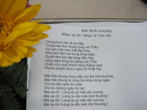 Sau khi ổn định chổ ở, vệ sinh cá nhân, dùng cơm chiều, các bạn trẻ được nhạc sĩ Tịnh Hải tập những bài hát sinh hoạt trong khóa tu, đặc biệt là bài “Mái nhà chung” được dành làm ca khúc chính cho khóa tu mùa hè năm nay.