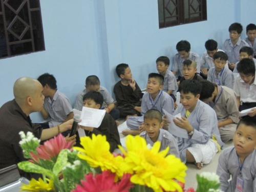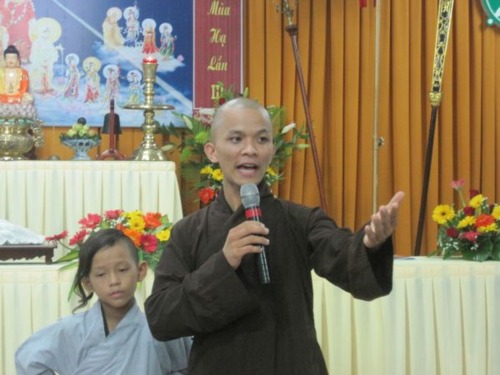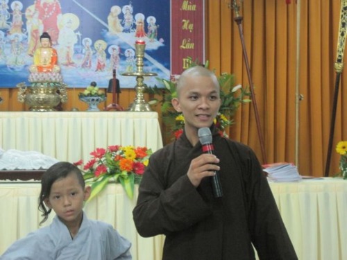 ĐĐ. Thích Chí Giác Thông phổ biến thông tin đến các em tham dự khóa tu