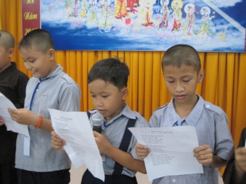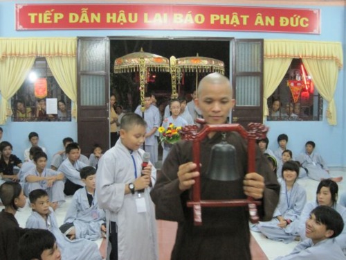 ĐĐ. Thích Thiền Lâm hướng dẫn các em nghi thức cung nghinh chư tôn đức đến chứng minh lễ khai mạc