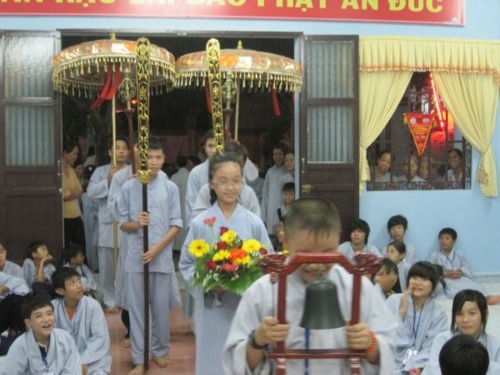 Lễ Phật cầu nguyện trước khi diễn ra khóa tu học cho giới trẻ