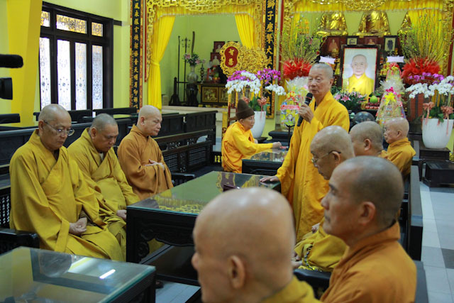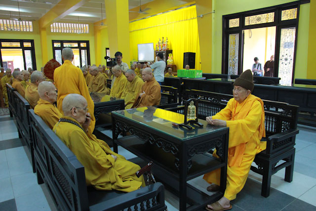 Tại buổi lễ, chư Hành giả đã trang nghiêm lắng nghe HT.Thích Trí Quảng thay mặt cho chư tôn giáo phẩm ban lời huấn từ sách tấn tu hành trong 3 tháng an cư. Hòa thượng mong chư Hành giả cố gắn thu mình trong giới luật để thúc liễm thân tâm, tấn tu tam vô lậu học, làm hành trang vững bước trong đời và đạo mai sau.