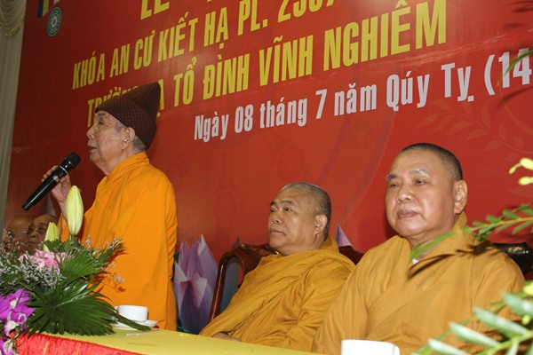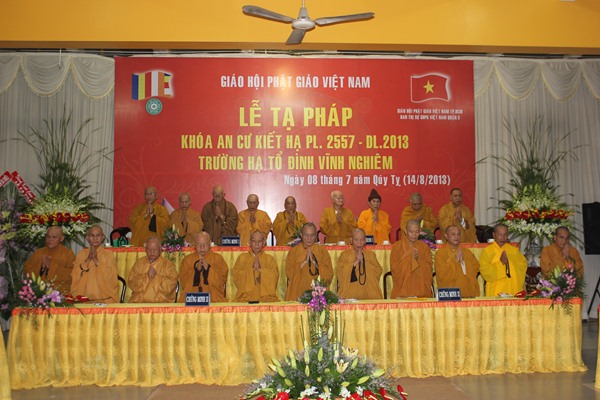 Duy trì truyền thống an cư ( Vassa = varsah) do Phật chế định, trong suốt 3 tháng mùa mưa, và thực hiện thong bạch của Ban Tăng sự Trung ương Giáo hội về việc tổ chức An cư kiết hạ. Ban Trị sư GHPGVN Q.3 và Ban Quản trị Tổ đình Vĩnh Nghiêm đã tiếp nhận đơn của 90 hành giả về An cư. Trường Hạ Vĩnh Nghiêm đặt dưới sự chứng minh và chỉ đạo của chư tôn giáo phẩm HĐCM, HĐTS, BTS GHPGVN Q.3.