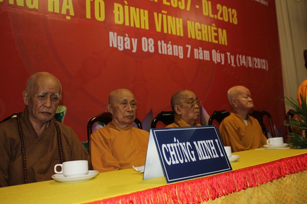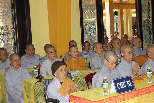 Quang lâm chứng minh có; Đức Trưởng lão Phó Pháp chủ Thích Hiển Pháp, HT. Thích Đức Nghiệp, HT Thích Hiển Tu – Phó Thư ký HĐCM, HT. Thích Viên Giác – ủy viên thường trực HĐCM, HT. Thích Trí Tịnh – TV HĐCM, HT. Thích Thiện Nhơn – Quyền Phó Chủ tịch Thường trực kiêm Tổng Thư ký HĐTS, HT. Thích Giác Toàn – Phó Chủ tịch kiêm Phó trưởng Ban thường trực Ban giáo dục Tăng Ni Trung ương, HT. Thích Thiện Tánh – Trưởng Ban Kiểm soát Trung ương, Phó Trưởng Ban thường trực BTS GHPGVN TP.HCM, HT. Thich Thiện Pháp – Phó Tổng thư ký kiêm chánh VP 2 TW GH cùng chư tôn giáo phẩm HĐTS, VP 2 TWGH, chư tôn thiền đức Tăng Ni Trưởng Ban trị sự Phật giáo các quận – huyện, Phân ban đặc trách Ni giới Trung ương cùng gần 100 hàng giả An cư cùng đông đảo quý Phật tử đã quang lâm chứng minh và tham dự lễ.