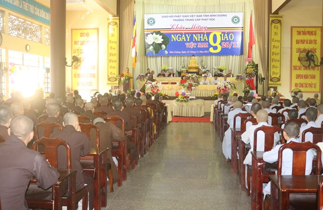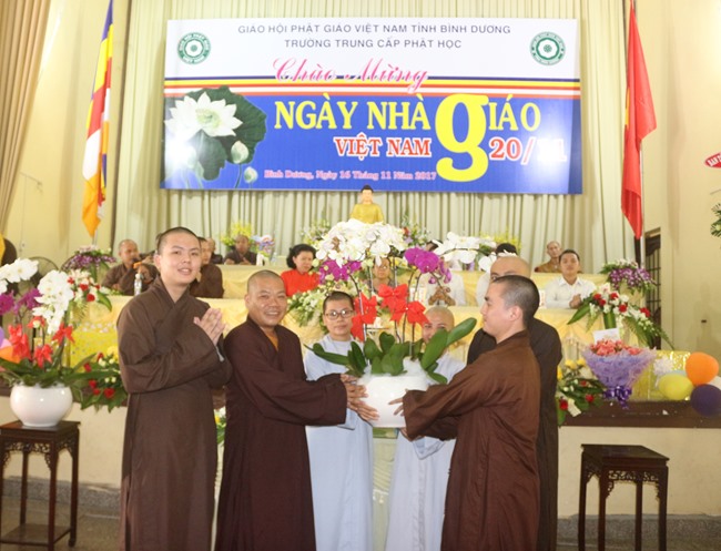 Hàng năm, ngày nhà giáo Việt Nam 20/11 luôn được thể hiện sự cao quý và rất đáng trân trọng của những người góp phần vun bồi sự nghiệp trồng người cho quê hương đất nước. Bởi thế, không chỉ riêng học sinh sinh viên tại thế sự, ngày này tăng, ni sinh các trường phật học cũng có thêm một ngày  để khắc ghi lòng thành kính tri ân đến chư tôn đức giảng sư ngày đêm vất vả bên trang giáo án nhằm truyền trao kiến thức phật học đến thế hệ hậu lai. Trường TCPH Bình Dương, hiện nay đang vào thời gian học của tăng, ni sinh khóa IV, cựu tăng ni sinh 3 khóa trước đã trưởng thành và có nhiều đóng góp cho tỉnh nhà.