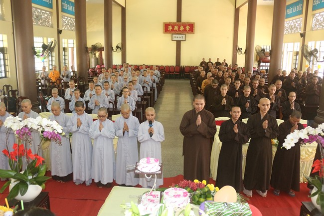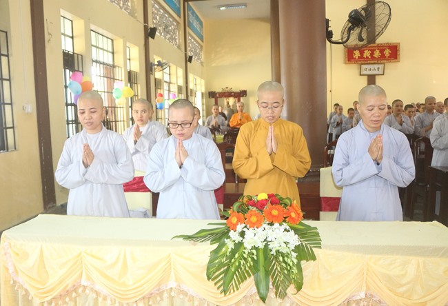 Trong buổi lễ, đại diện tăng ni sinh đã thành kính dâng lời tác bạch bày tỏ niềm tôn kính và chúc mừng đến Chư tôn đức trong BGH, chư vị Giáo thọ sư, các thầy cô giáo.