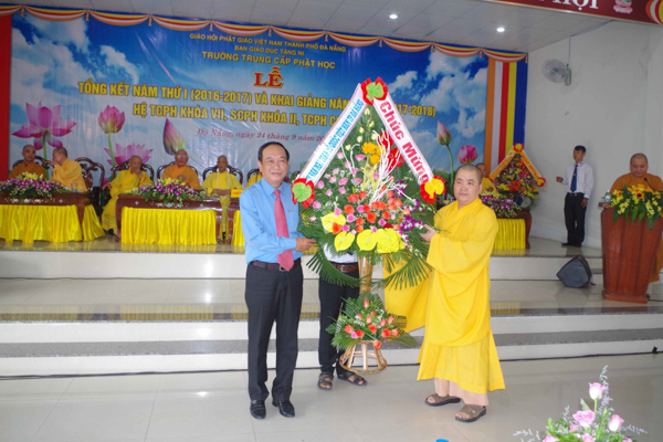 Quang lâm chứng minh và tham dự buổi lễ có HT. Thích Như Thọ – Thành viên HĐCM GHPGVN, Chứng minh BTS GHPGVN Tp Đà Nẵng; HT. Thích Huệ Thường – Chứng minh BTS GHPGVN Tp Đà Nẵng; HT. Thích Từ Tánh – UV HĐTS GHPGVN, Phó trưởng BTS kiêm Trưởng Ban GDTN GHPGVN Tp Đà Nẵng; HT. Thích Trí Viên – Phó trưởng BTS kiêm Trưởng Ban Tăng sự GHPGVN Tp Đà Nẵng; HT. Thích Huệ Thông – UVTT BTS GHPGVN Tp Đà Nẵng; TT. Thích Từ Nghiêm – UV HĐTS GHPGVN, Phó trưởng BTS kiêm Trưởng ban Hoằng pháp GHPGVN Tp Đà Nẵng; ĐĐ. Thích Thông Đạo – UV HĐTS GHPGVN, Phó trưởng ban kiêm Chánh thư ksy BTS GHPGVN Tp Đà Nẵng; ĐĐ. Thích Chúc Tín – Phó thư ký kiêm Chánh văn phòng BTS GHPGVN Tp Đà Nẵng, Hiệu trưởng trường TCPH Đà Nẵng.