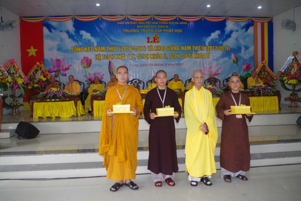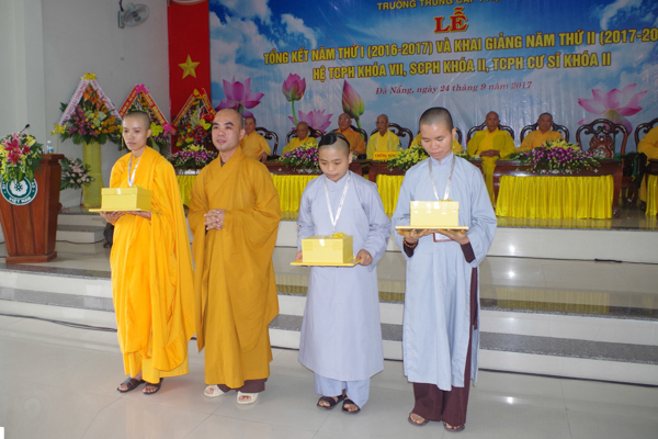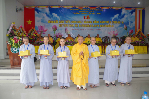 Tại buổi lễ, Ban giám hiệu nhà trường đã báo cáo kết quả học tập của năm thứ 1 và thông qua chương trình giảng dạy của năm thứ 2 đồng thời trao thưởng cho Tăng ni sinh và học viên cư sĩ đạt thành tích tốt trong năm học thứ 1.