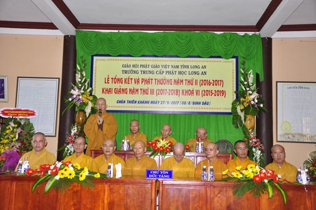 Sau phần giới thiệu, ĐĐ. Thích Lệ Trí báo cáo tổng kết tình hình sinh hoạt tu học trong năm học thứ II của Trường Trung cấp Phật học Long An tại 2 cơ sở: Tăng sinh Chùa Thiên Khánh và Phân viện II- chư Ni chùa Thiên Phước. Theo bản báo cáo sơ bộ của Ban tổ chức cho thấy kết quả đào tạo, giáo dục của 2 điểm trường vô cùng khả quan. Hai cơ sở đều có chương trình tu học và sinh hoạt ngoại khóa cho Tăng Ni sinh ổn định, tất cả đều tiếp thu, học tập tốt.
