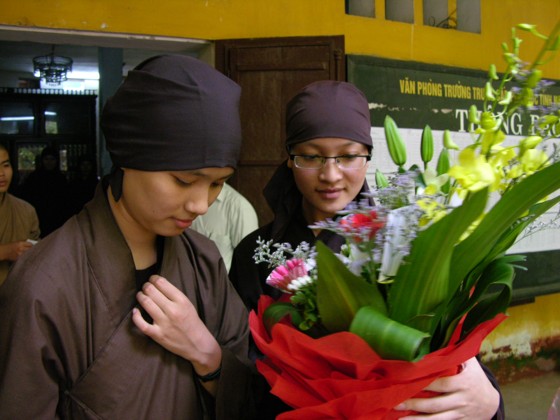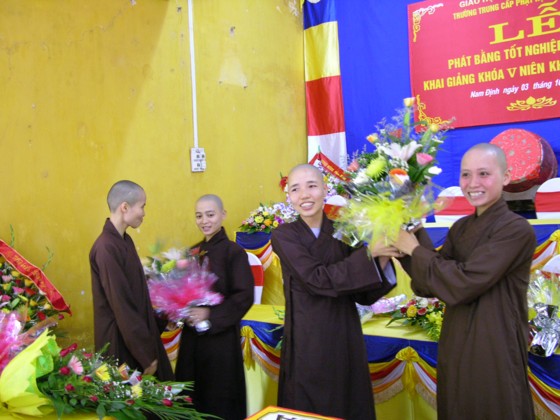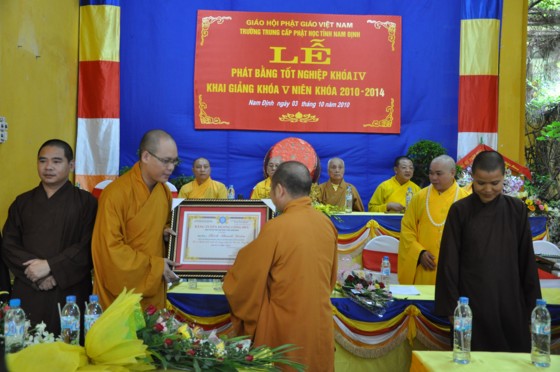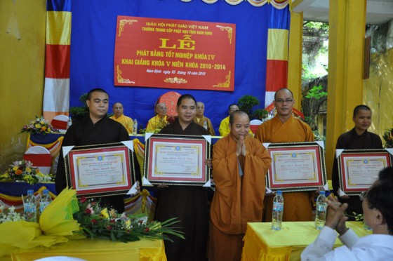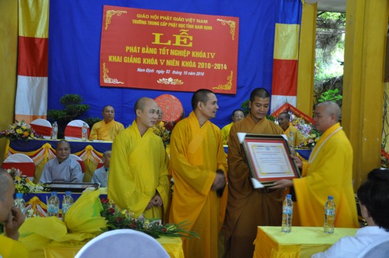 Tại buổi lễ HT Hiệu trưởng, chư Thượng toạ Hiệu phó trường trung cấp Phật học cùng chư tôn đức trong ban giám hiệu phát phần thưởng và bằng tốt nghiệp cho Tăng Ni sinh có kết quả học tập suất sắc.