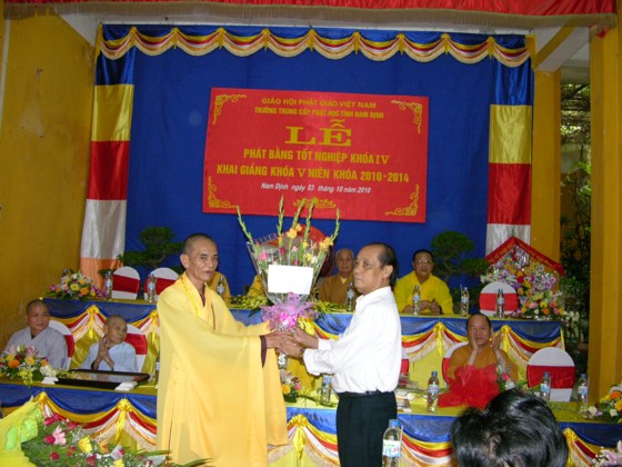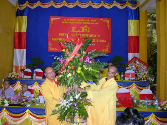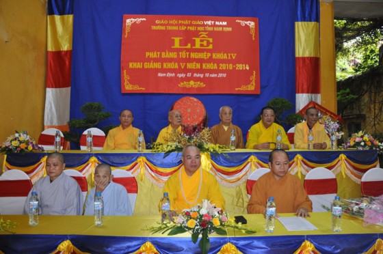 Chứng minh và tham dự có chư tôn đức Hoà thượng thành viên HĐCM TW GHPGVN: HT Thích Minh Tâm; HT Thích Nhật Tân; HT Thích Thanh Đàm; HT Thích Hạnh Nghiêm – Trưởng BTS tỉnh hội Phật giáo Nam Định – Hiệu trưởng trường Trung cấp Phật học tỉnh Nam Định; TT Thích Gia Quang – Phó tổng thư ký HĐTS TW GHPGVN – Kiêm chánh văn phòng I; TT Thích Thanh Duệ – Uỷ viên TT HĐTS TW GHPGVN – Phó viện trưởng Học viện PG Việt Nam tại Hà Nội cùng chư tôn đức Ban giám hiệu trường trung cấp Phật học tỉnh Nam Định và đông đảo Tăng Ni sinh khoá IV và khoá V trường Trung cấp Phật học tỉnh Nam Định.