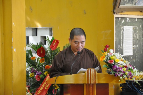 Đại đức Thích Thanh Đoàn báo cáo chương trình tu học khoá V. Nhân dịp này đại diện lãnh đạo các cấp chính quyền ông Nguyễn Văn Độ phát biểu chúc mừng.