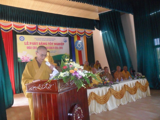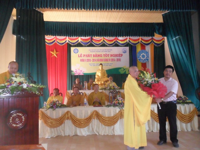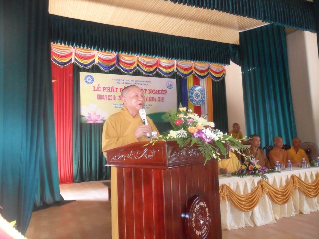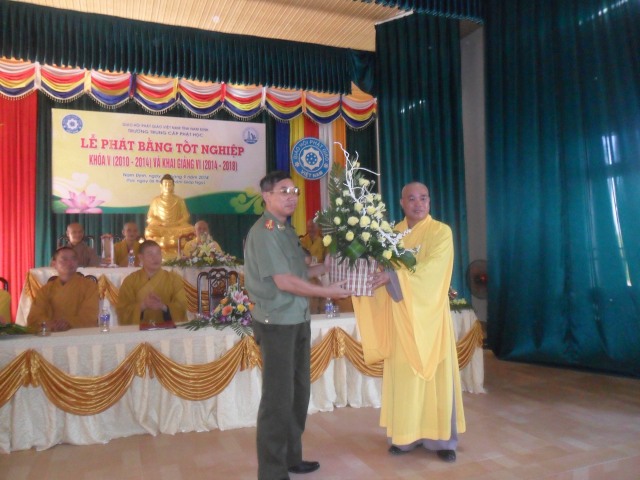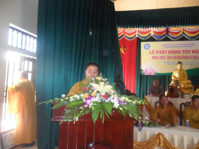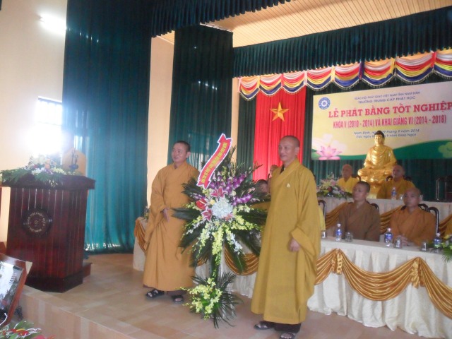 HT cũng có lời chúc mừng Ban trị sự PG tỉnh Nam Định, Ban giám hiệu nhà trường và toàn thể tăng ni sinh.