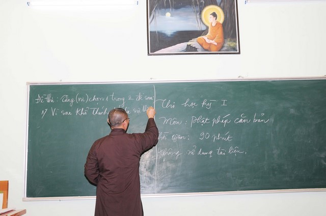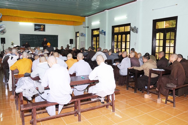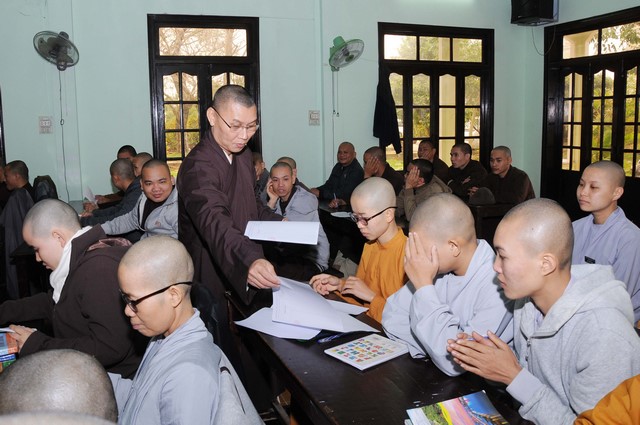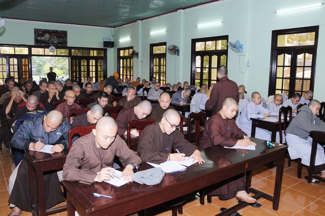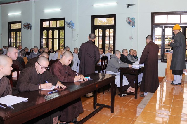Mở đầu kỳ thi, HT.Thích Như Phẩm, Phó Hiệu trưởng trường Phật học Quảng Nam có lời sách tấn Tăng Ni sinh (TNS) hãy cố gắng nghiêm túc, trung thực trong khi làm bài… Kỳ thi diễn ra trong 3 ngày, từ ngày 01 đến ngày 03/2/2018, với 8 môn thi: Hán văn, Anh văn, Tiếng Việt, Phật và Thánh chúng, Phật Pháp căn bản, Luật Tỳ-ni và Kinh Bách dụ.