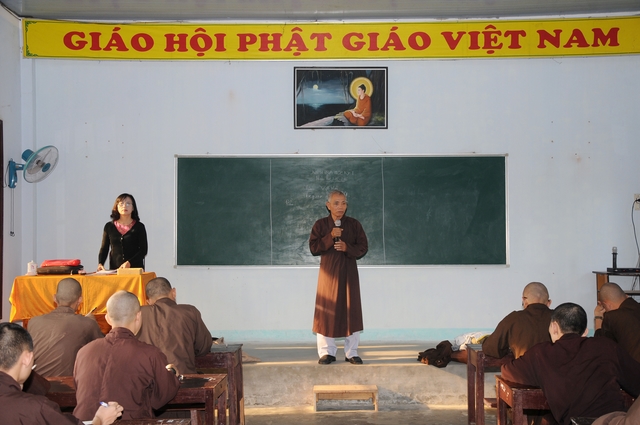 HT.Thích Như Phẩm, Phó Hiệu trưởng trường Phật học Quảng Nam có lời sách tấn Tăng Ni sinh (TNS) hãy cố gắng nghiêm túc, trung thực trong khi làm bài và tuyệt đối không sử dụng tài liệu.