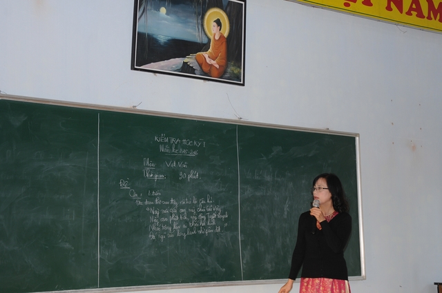 Ngày thi đầu tiên môn Việt văn diễn ra thật nghiêm túc, với “thâm niêm” 11 năm phụ trách giảng dạy môn Việt văn tại trường Phật học Quảng Nam, cô Nguyễn Thị Ánh Minh chia sẻ, giảng dạy cho TNS tại trường Phật học là một niềm vui của cô, bởi nhiều năm nay, Phật giáo lấy “duy tuệ thị nghiệp” làm phương châm tu học và hành đạo, chứng tỏ đạo Phật rất coi trọng sự nghiệp giáo dục, đào tạo.