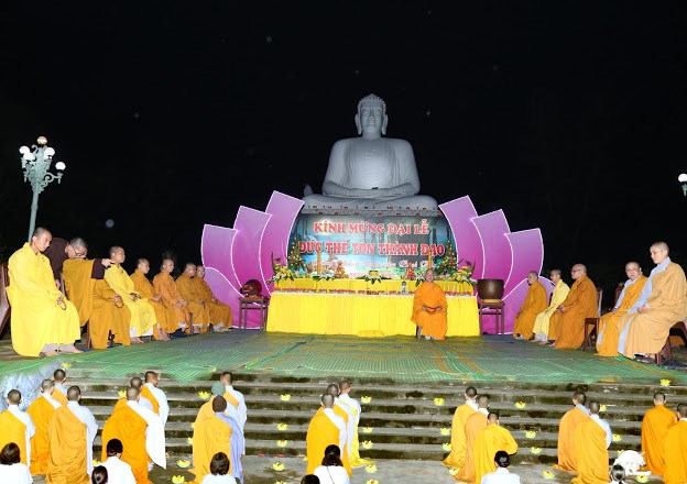 Buổi lễ được tiếp nối bằng việc cử hành nghi thức cúng dường thành đạo. Sau đó, ngọn nến được TT. Thích Đồng Tịnh mồi từ bàn Phật truyền trao đến chư tôn đức, Tăng Ni sinh và Phật tử. Trong đêm tĩnh mịch, ánh sáng lung linh từ những ngọn nến làm sáng rực một góc trời, âm vang trầm hùng của tiếng niệm danh hiệu Đức Bổn Sư vang vọng cả đồi núi như xóa tan màn đêm tăm tối, làm thức dậy tiếng Giới-Định-Tuệ trong lòng của cả chúng hội. Trong thời khắc đó, TT. Thích Đồng Tịnh ban đạo từ tưởng niệm lòng Từ bi vô tận và Trí tuệ vô song của Đức Phật, tán thán công đức Ban Giám hiệu, sách tấn Tăng Ni sinh tinh tấn tu học.