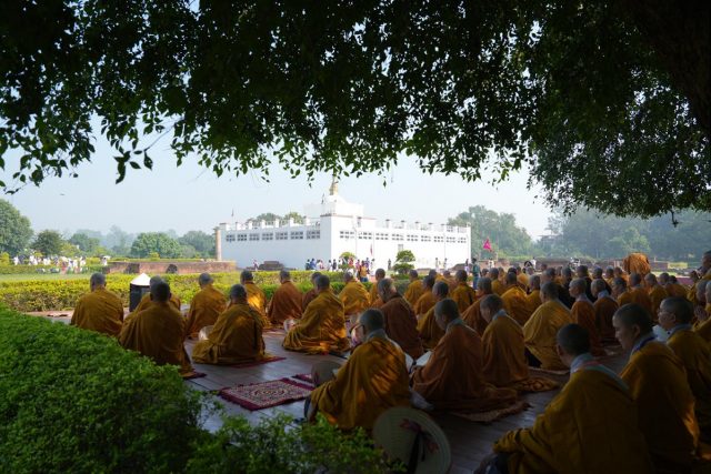 Qua đó, Thượng tọa mong muốn đại chúng hãy luôn để Phật đản sinh trong lòng chính mình. Tiếp theo, chư Tôn đức cùng toàn thể đại chúng đã trang nghiêm tụng Bộ Kinh Chuyển Pháp Luân và hành thiền – quán niệm dưới cội Bồ-đề bên cạnh hồ nước thiêng. Những phút giây tĩnh lặng ấy giúp mỗi hành giả trẻ trở về với nguồn cội giác ngộ, cảm nhận sâu sắc “một khởi đầu” đã làm chuyển động lịch sử, đồng thời soi lại hành trình tu học của chính mình hôm nay.