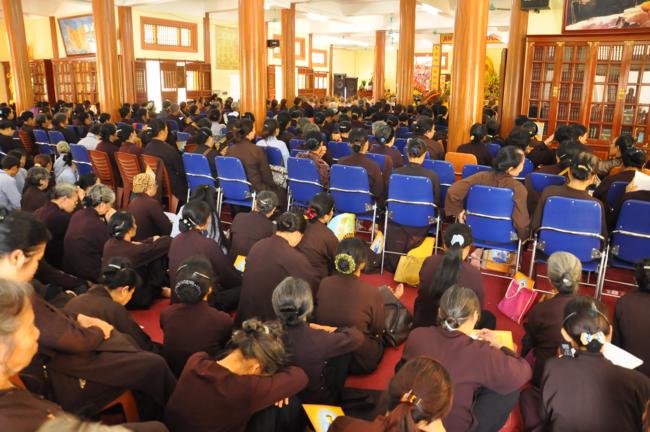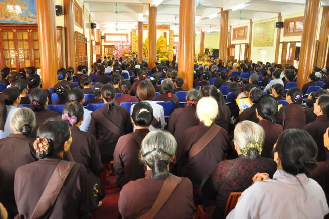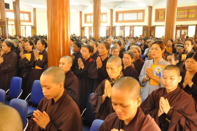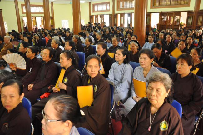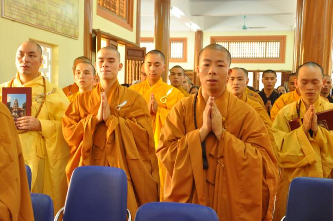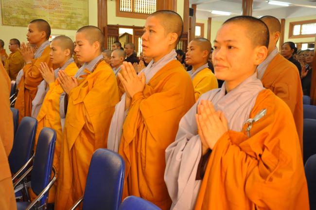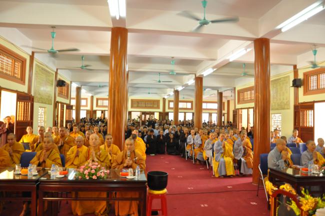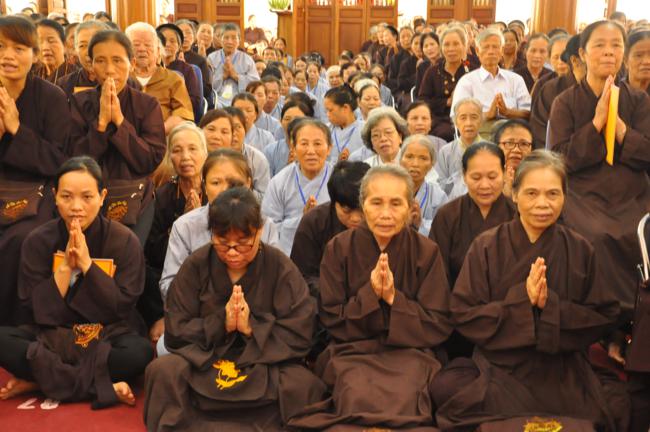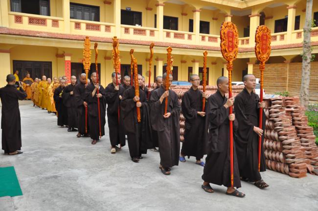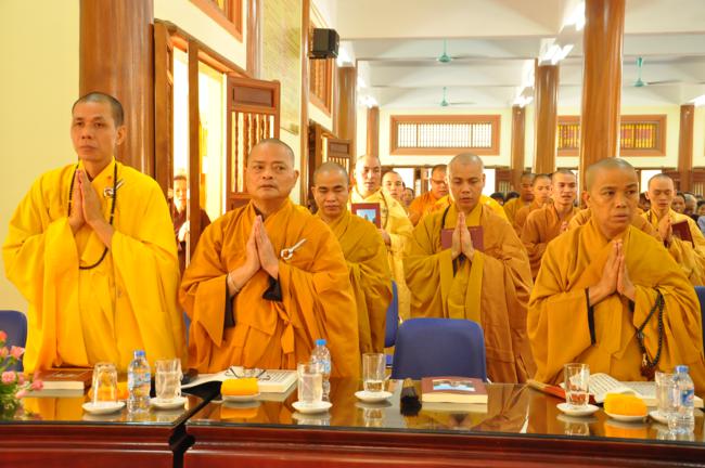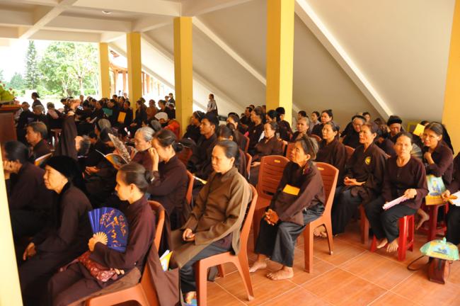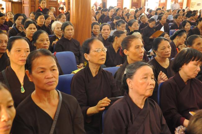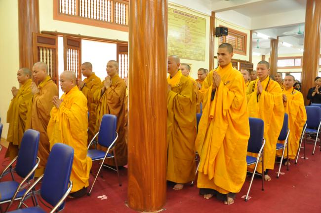 Về dự lễ còn có 239 hành giả an cư tại trường hạ, đại diện chính quyền huyện Đan Phượng và hàng trăm Phật tử đến cúng dường, nghe pháp.