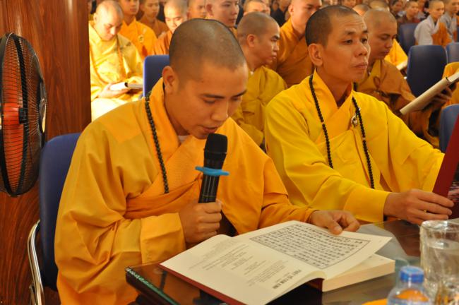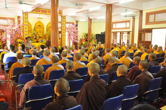 Chư tôn đức tăng, ni, chư hành giả an cư cùng toàn thể đại chúng đã trang nghiêm cử hành nghi thức khai kinh. Tiếp đó, đại diện chư hành giả an cư đã dâng lời cầu pháp. Hòa thượng Thích Bảo Nghiêm, Trưởng Ban Hoằng Pháp T.Ư GHPGVN đã ban lời pháp nhũ, giới thiệu cho đại chúng về bộ Phật tổ Tam kinh. HT cũng sách tấn chư hành giả nghiêm trì giới luật, tinh tấn tu tập để tiến tới đạt quả vị thánh.