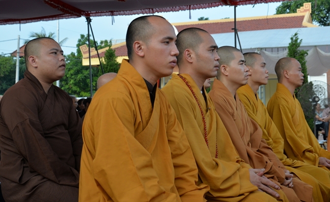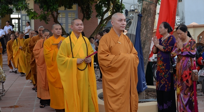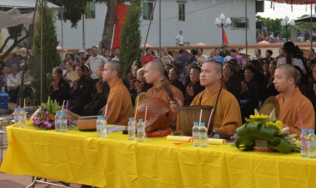 Dưới cái nắng gắt của buổi chiều mùa hè tháng 6 nhuận, Thượng tọa Thích Tiến Đat cùng chư Tăng Phật tử đã nhất tâm chú nguyện tán lễ, tụng kinh A Di Đà, cúng thí thực hồi hướng cho chư vị hương linh. Ngài dạy rằng, giáo lý nhà Phật luôn nhắc chúng sinh về nhân quả, cội nguồn và sự tri ân.