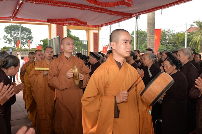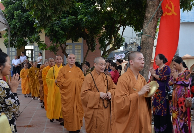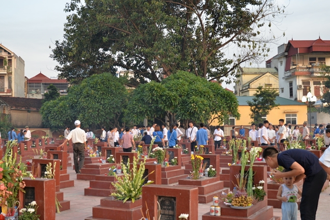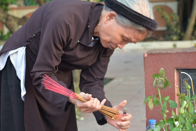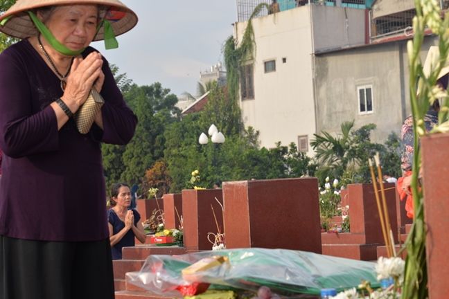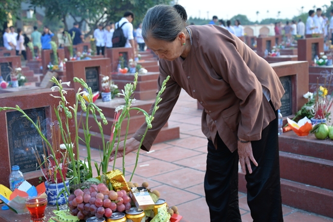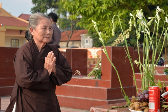 Lắng lòng nghe tiếng kinh cầu, lời giảng đạo, phật tử huyện Đan Phượng cùng chắp tay cúi nguyện. Những nén hương thơm được thân nhân các anh hùng liệt sỹ cùng nhân dân địa phương dưới sự hỗ trợ của các em tình nguyện viên đã được thắp lên trên ngôi mộ của những người con hy sinh anh dũng để giữ trọn non sông.