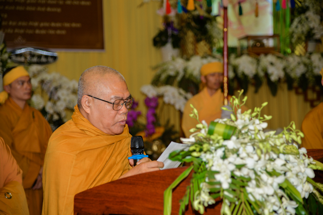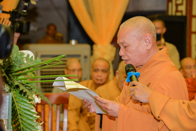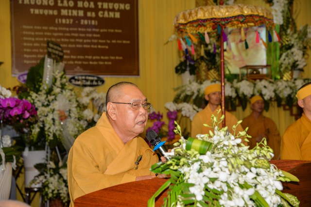 “Người xưa nay đã còn đâu, chỉ còn mây bạc lòng sầu nhớ thương. Ra vào lòng dạ vấn vương, bóng hình Đại sĩ du phương xa mờ”. Song công đức và đạo nghiệp của Trưởng lão Hòa thượng vẫn còn sống mãi trong tâm tư, trong ký ức của Tăng Ni, Phật tử Việt Nam và trang sử rạng ngời của Phật giáo Việt Nam thời hiện đại, nhất là trang sử vàng son của Phật giáo Tp. Hồ Chí Minh. Chúng tôi, thay mặt Hội đồng Chứng minh, Hội đồng Trị sự, Ban Trị sự Giáo hội Phật giáo Việt Nam Tp. Hồ Chí Minh, xin đốt nén tâm hương cúng dường Giác linh Trưởng lão Hòa thượng, để gọi là thể hiện mối tâm giao, tình Pháp lữ đời đời trong Chánh pháp. Kính nguyện Giác linh Trưởng lão Hòa thượng bất vong nguyện lực, tái hiện đàm hoa, phát triển đạo vàng, quang vinh họ Thích ngàn đời. “ HT.Thích Thiện Nhơn đã đọc.