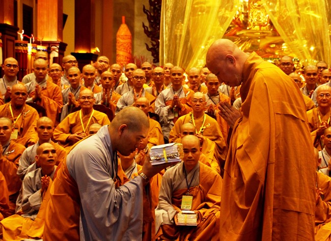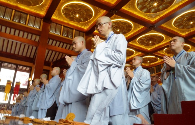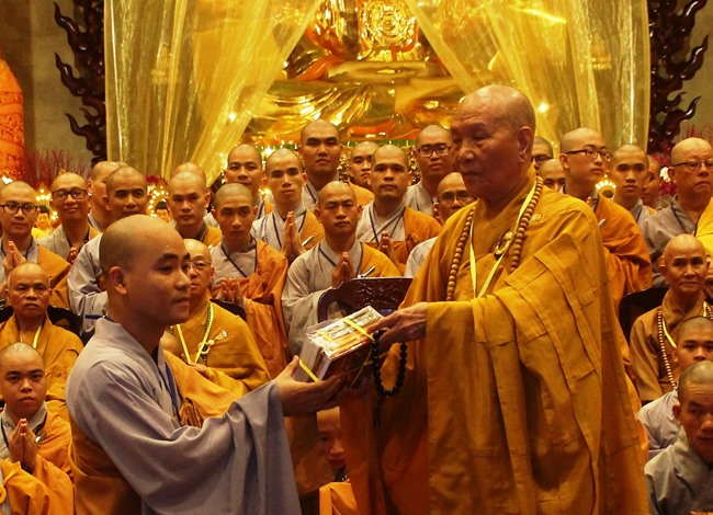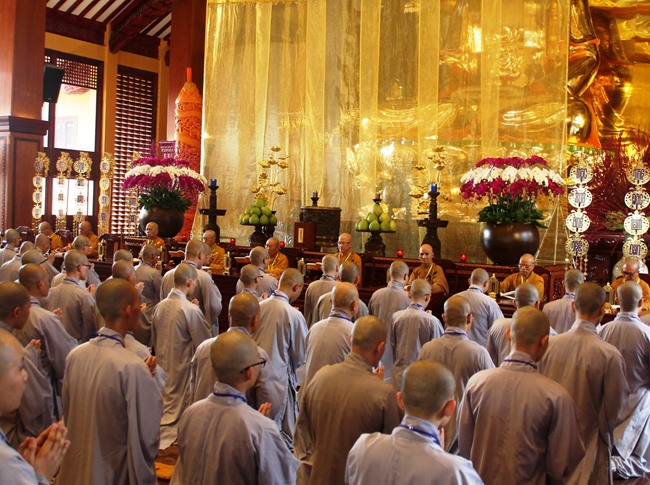 Đàn truyền giới Sa Di diễn ra trang nghiêm và thanh tịnh. Các giới tử tập trung tại Tổ đường theo sự dẫn thỉnh của TT.Thích Lệ Trang – Trưởng Ban Nghi Lễ GHPGVN TP.HCM. Sau đó, đăng đàn thọ nhận giới pháp tại Đại hùng bửu điện Việt Nam Quốc Tự.