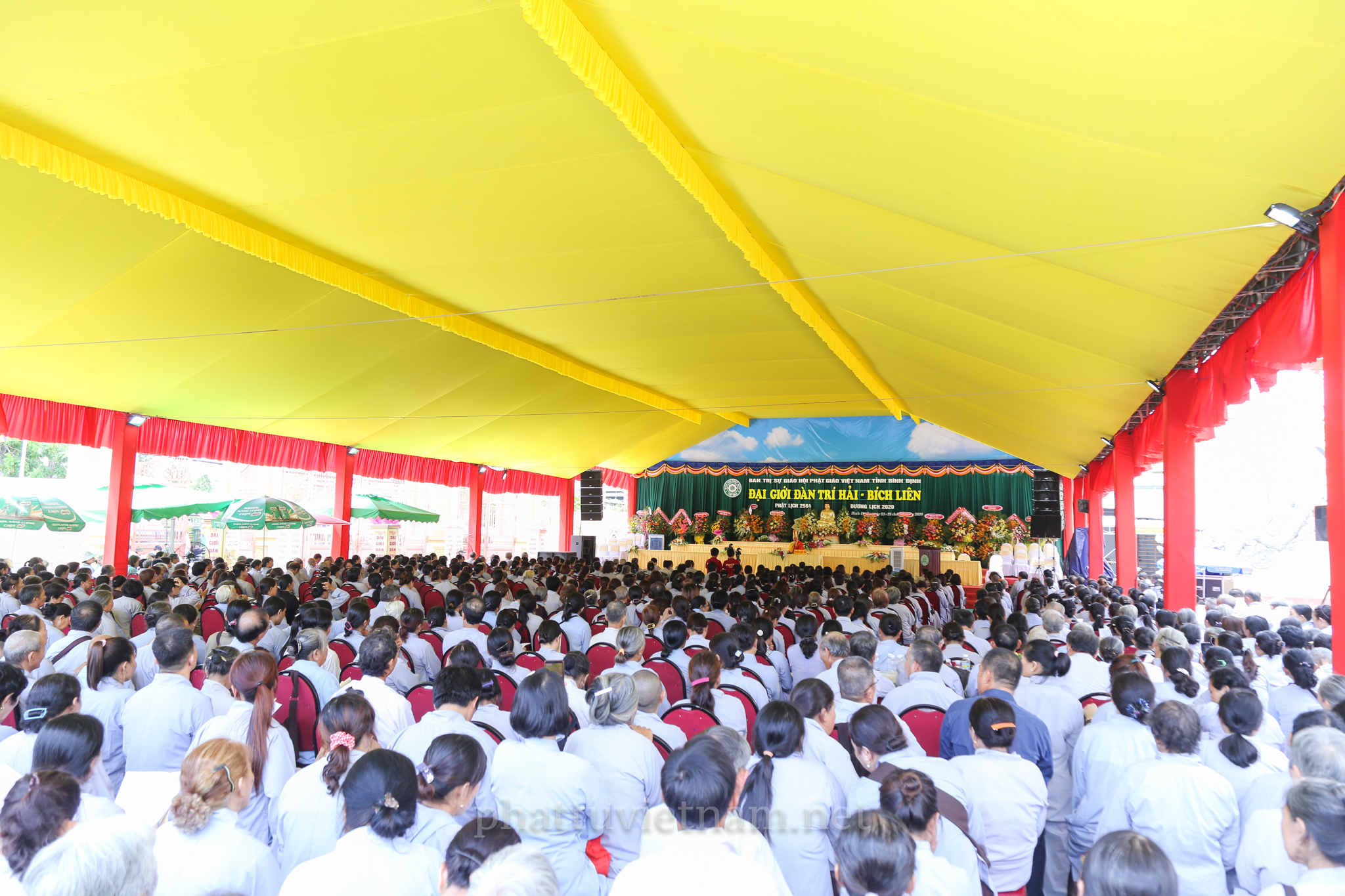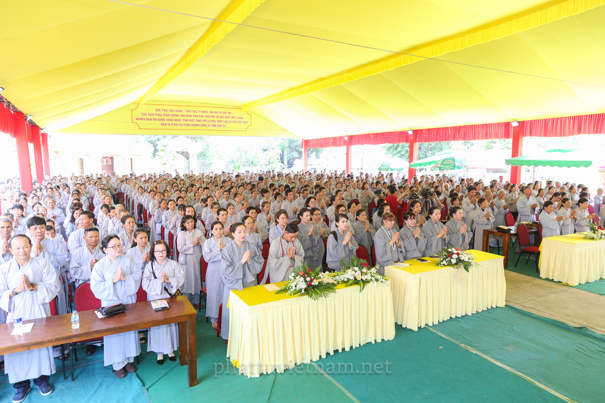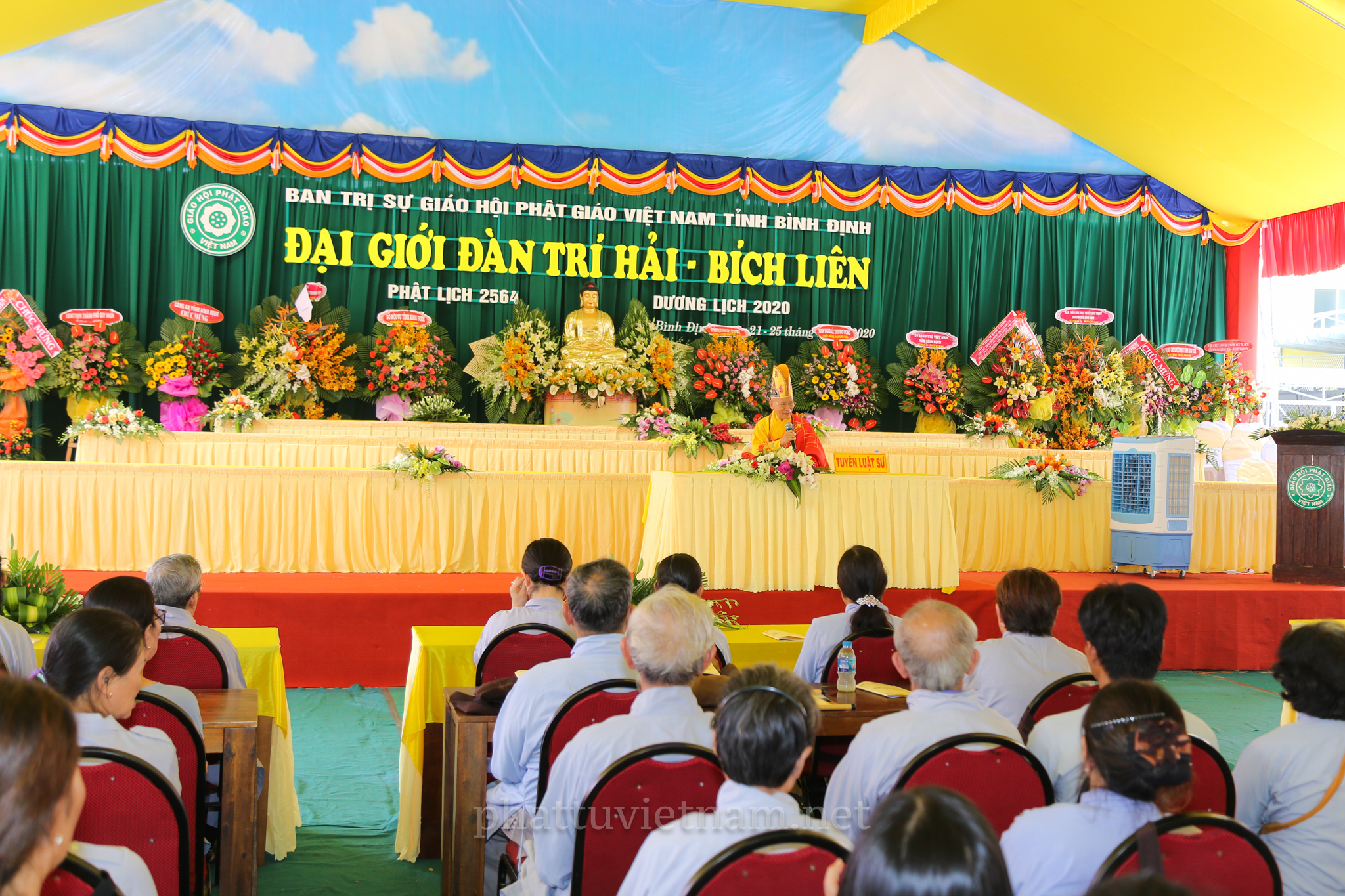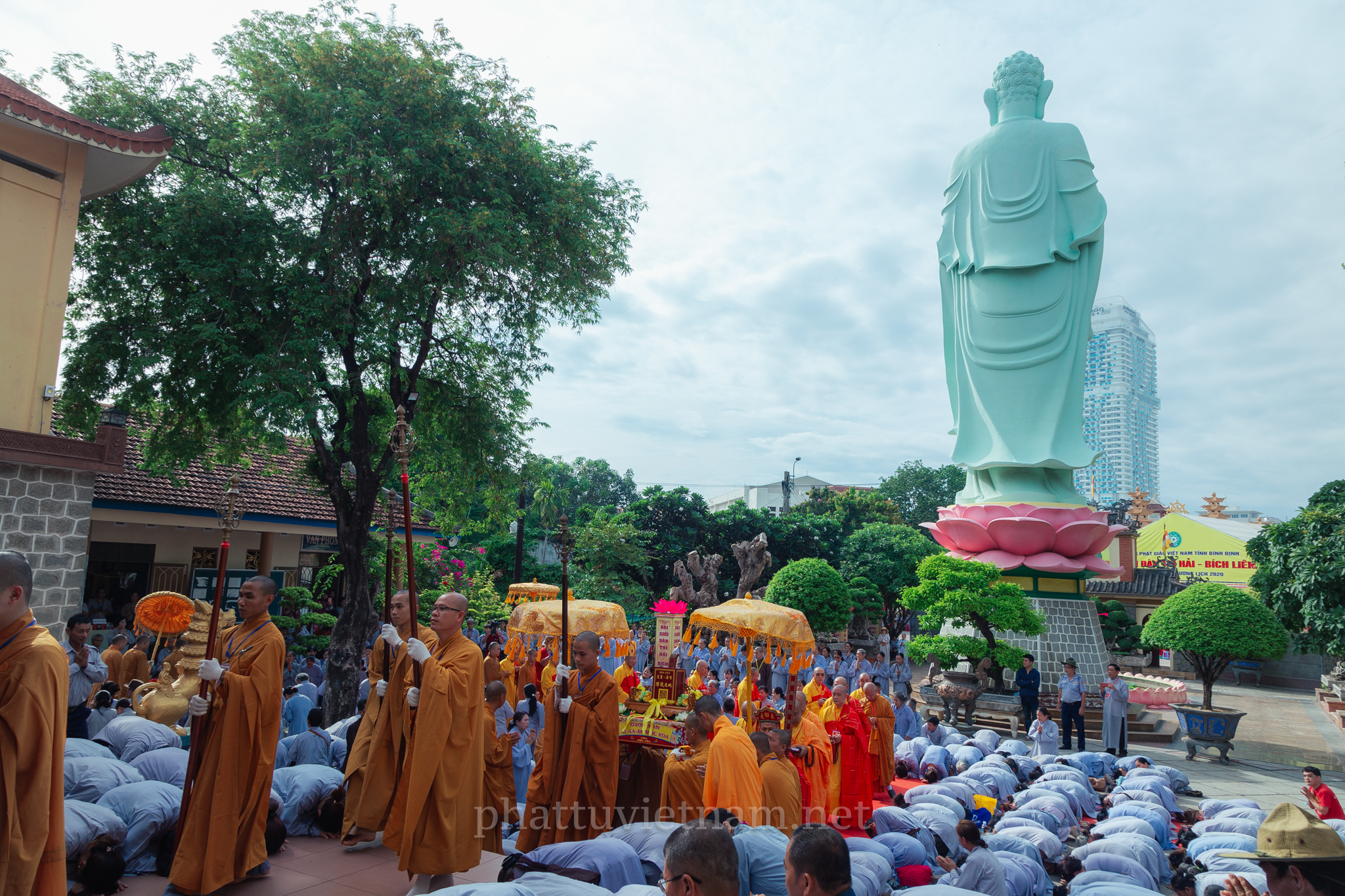 PTVN – Sáng ngày 24/7/2020 (nhằm ngày 4/6/Canh Tý), vào lúc 8 giờ tại Đại giới trường Tổ đình Long Khánh (số 141 Trần Cao Vân, TP.Quy Nhơn) toàn thể Giới tử tại gia đã vân tập trang nghiêm cung thỉnh chư Tôn đức Hội đồng Thập sư Đại giới đàn Trí Hải – Bích Liên cử hành lễ Tấn đàn thọ giới Thập thiện và Bồ tát tại gia.