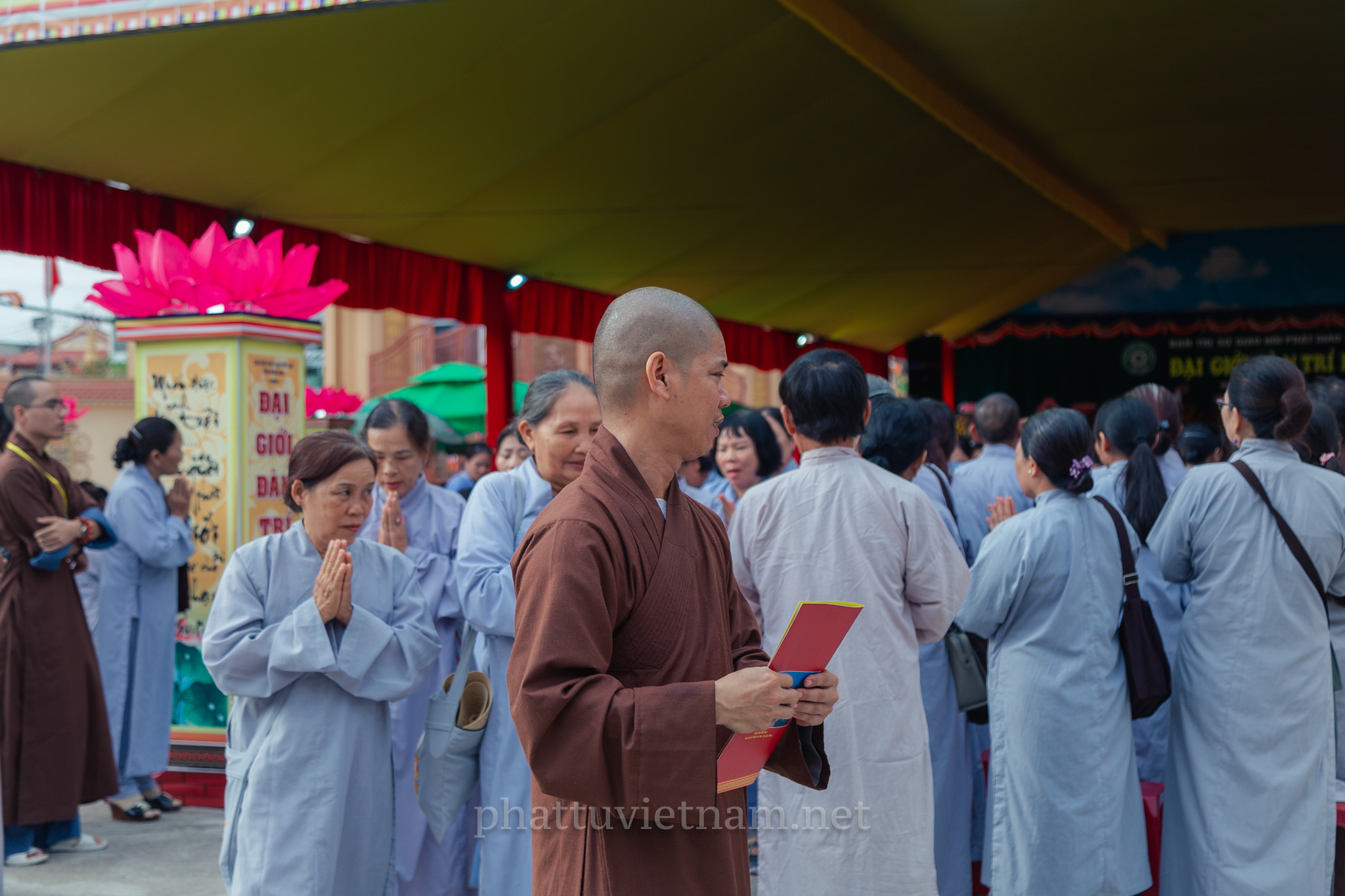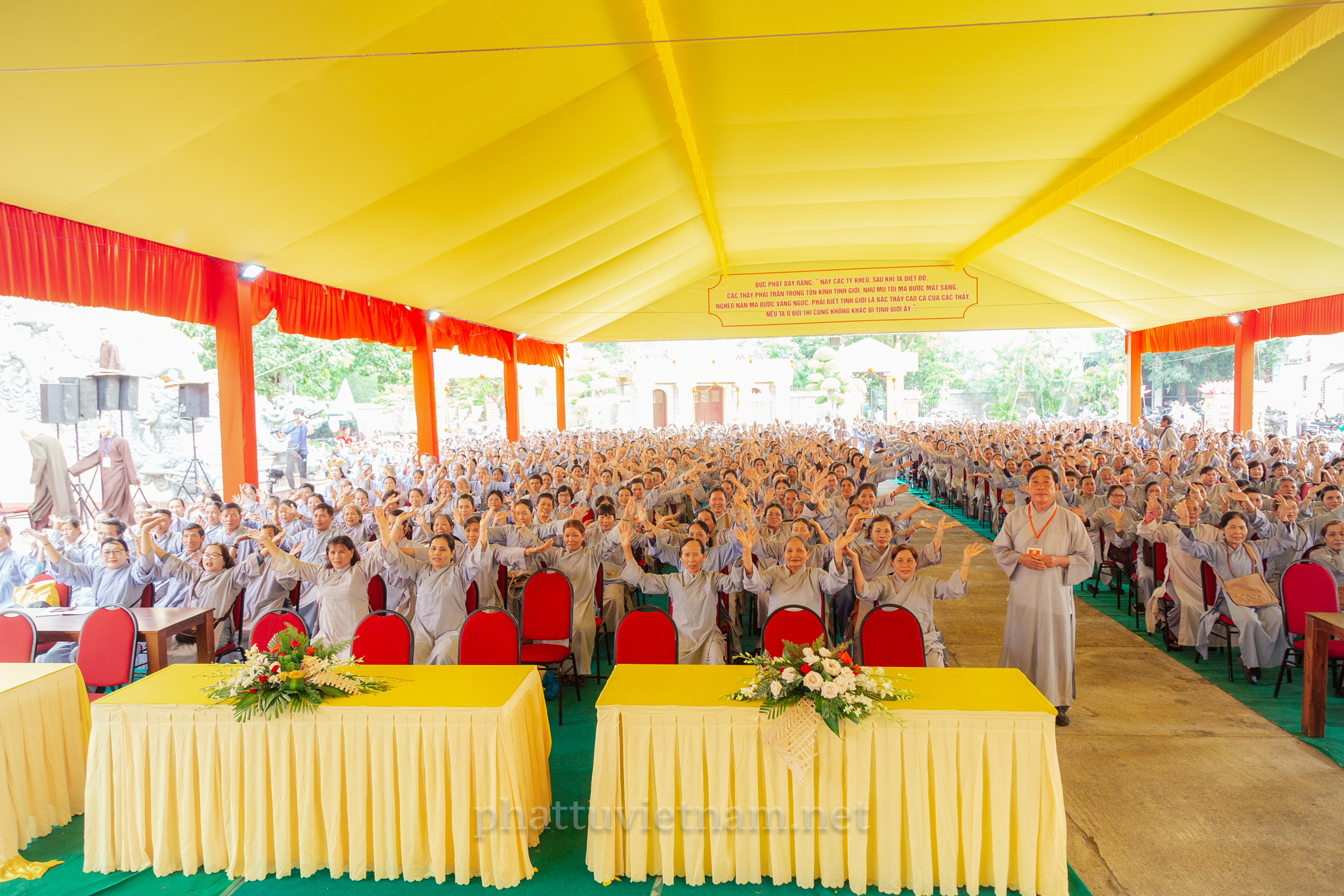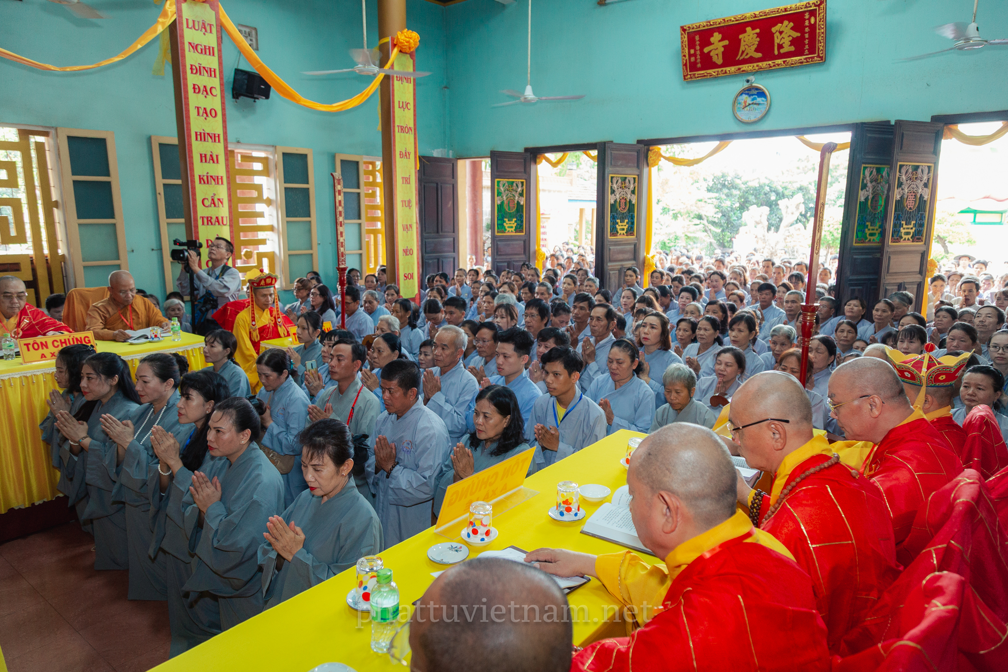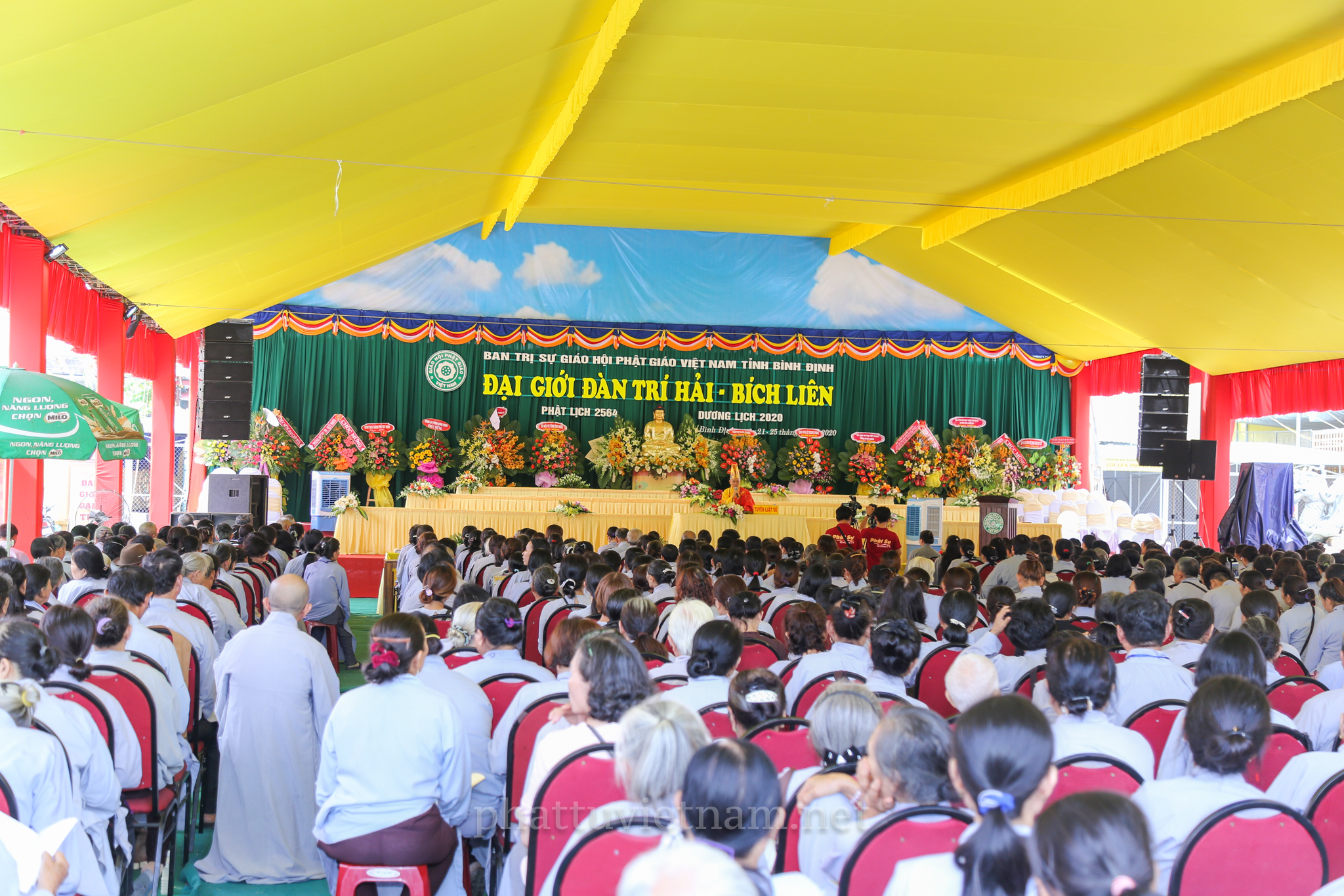 PTVN – Sáng ngày 24/7/2020 (nhằm ngày 4/6/Canh Tý), vào lúc 8 giờ tại Đại giới trường Tổ đình Long Khánh (số 141 Trần Cao Vân, TP.Quy Nhơn) toàn thể Giới tử tại gia đã vân tập trang nghiêm cung thỉnh chư Tôn đức Hội đồng Thập sư Đại giới đàn Trí Hải – Bích Liên cử hành lễ Tấn đàn thọ giới Thập thiện và Bồ tát tại gia.