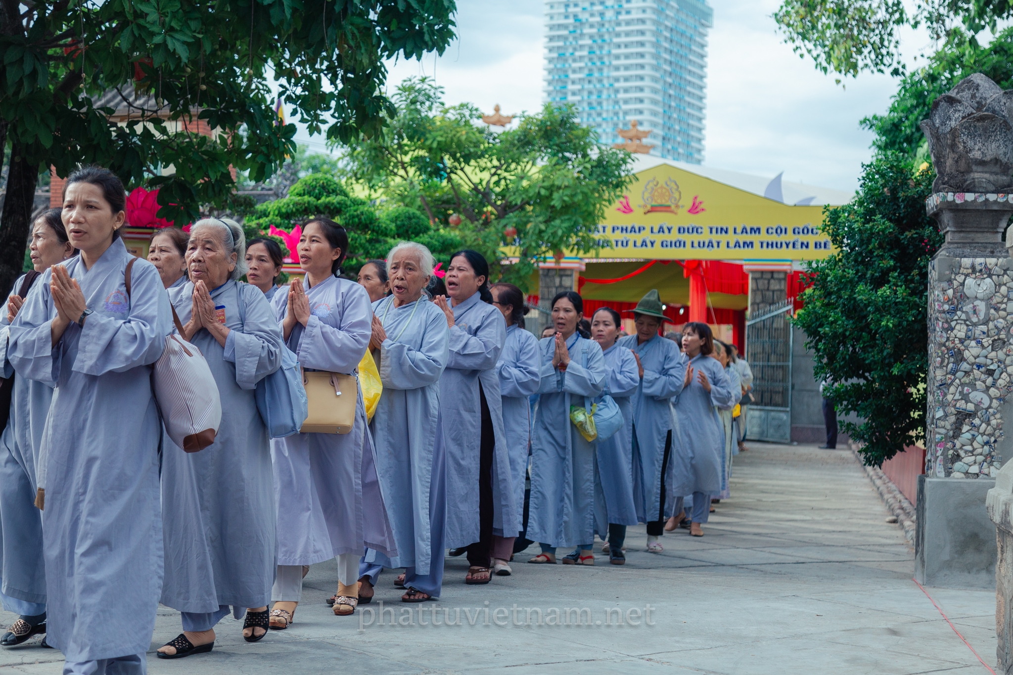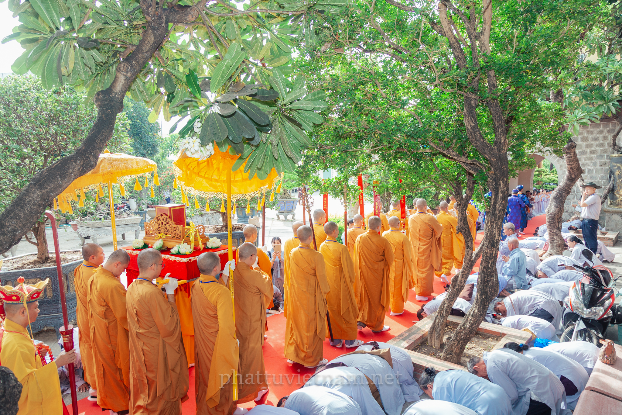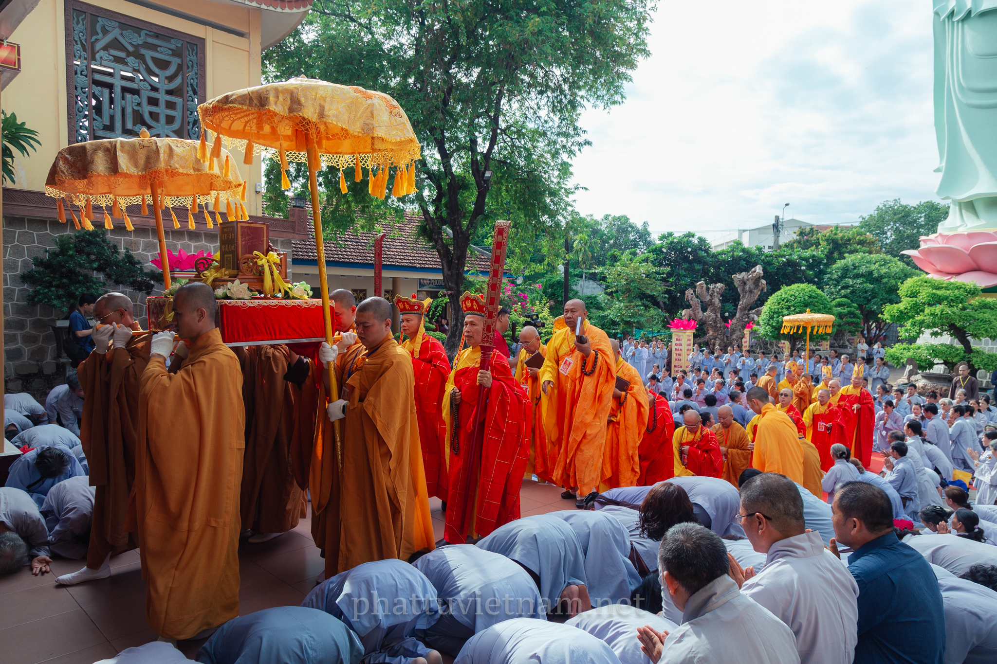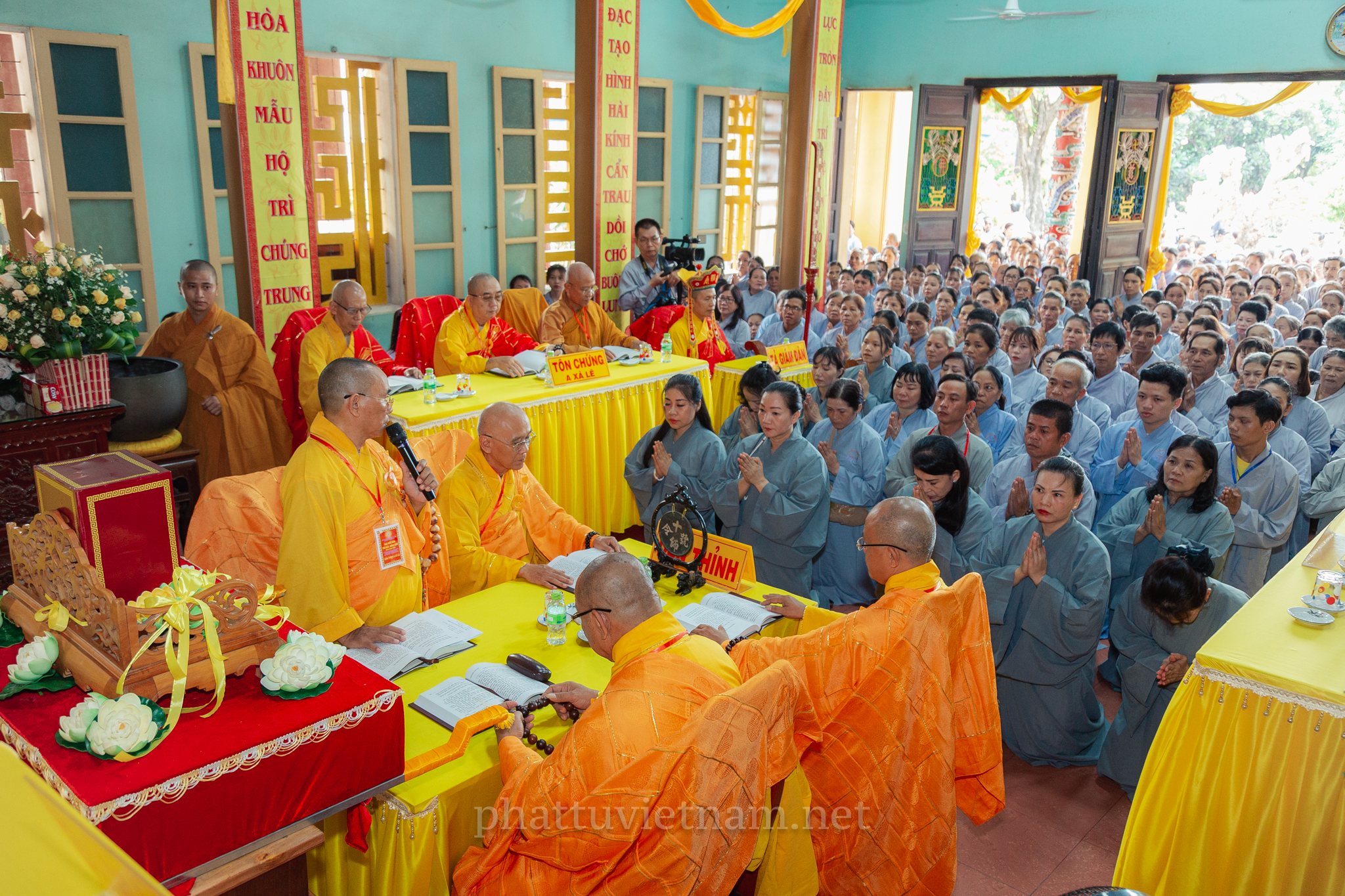 PTVN – Sáng ngày 24/7/2020 (nhằm ngày 4/6/Canh Tý), vào lúc 8 giờ tại Đại giới trường Tổ đình Long Khánh (số 141 Trần Cao Vân, TP.Quy Nhơn) toàn thể Giới tử tại gia đã vân tập trang nghiêm cung thỉnh chư Tôn đức Hội đồng Thập sư Đại giới đàn Trí Hải – Bích Liên cử hành lễ Tấn đàn thọ giới Thập thiện và Bồ tát tại gia.