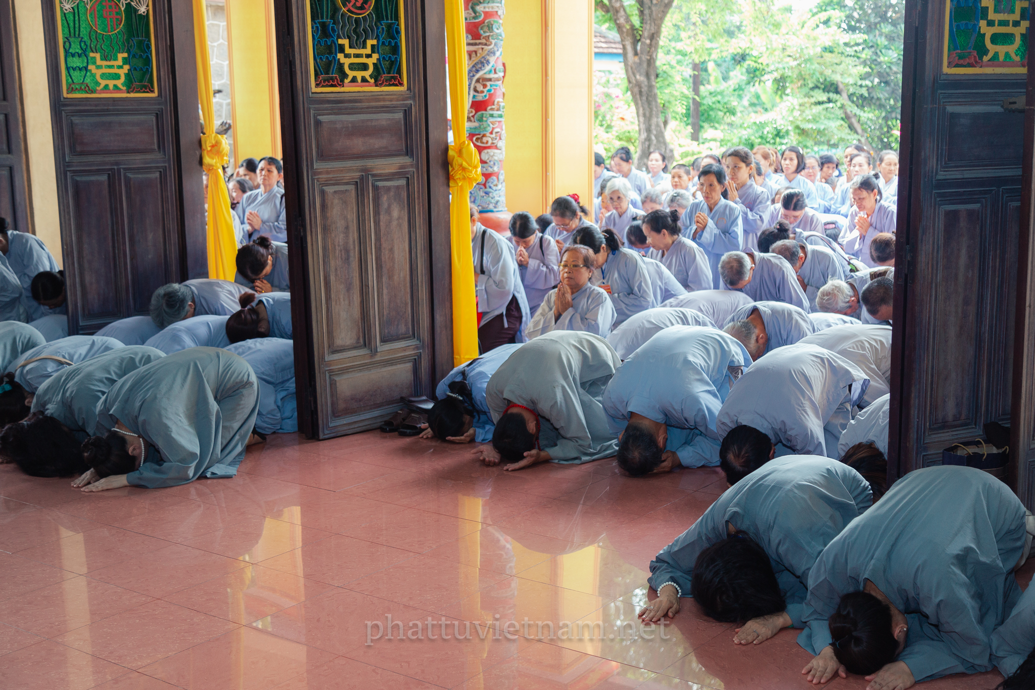 Toàn thể giới tử tại gia đã cung kính hướng về mười phương Tam Bảo chí thành sám hối những ác nghiệp đã tạo trong vô lượng kiếp, lắng lòng thanh tịnh để lãnh thọ giới pháp từ Hội đồng Thập sư.
